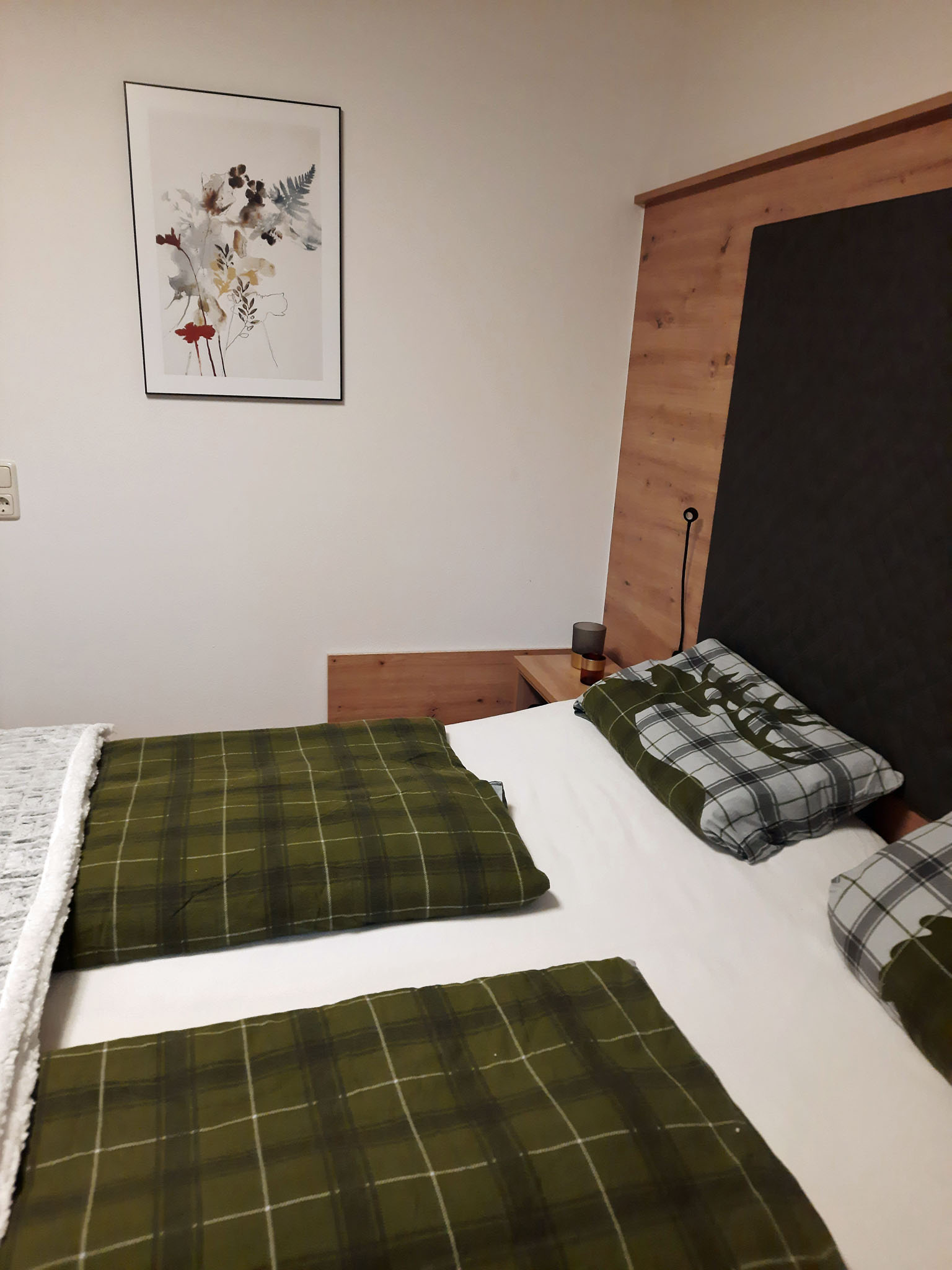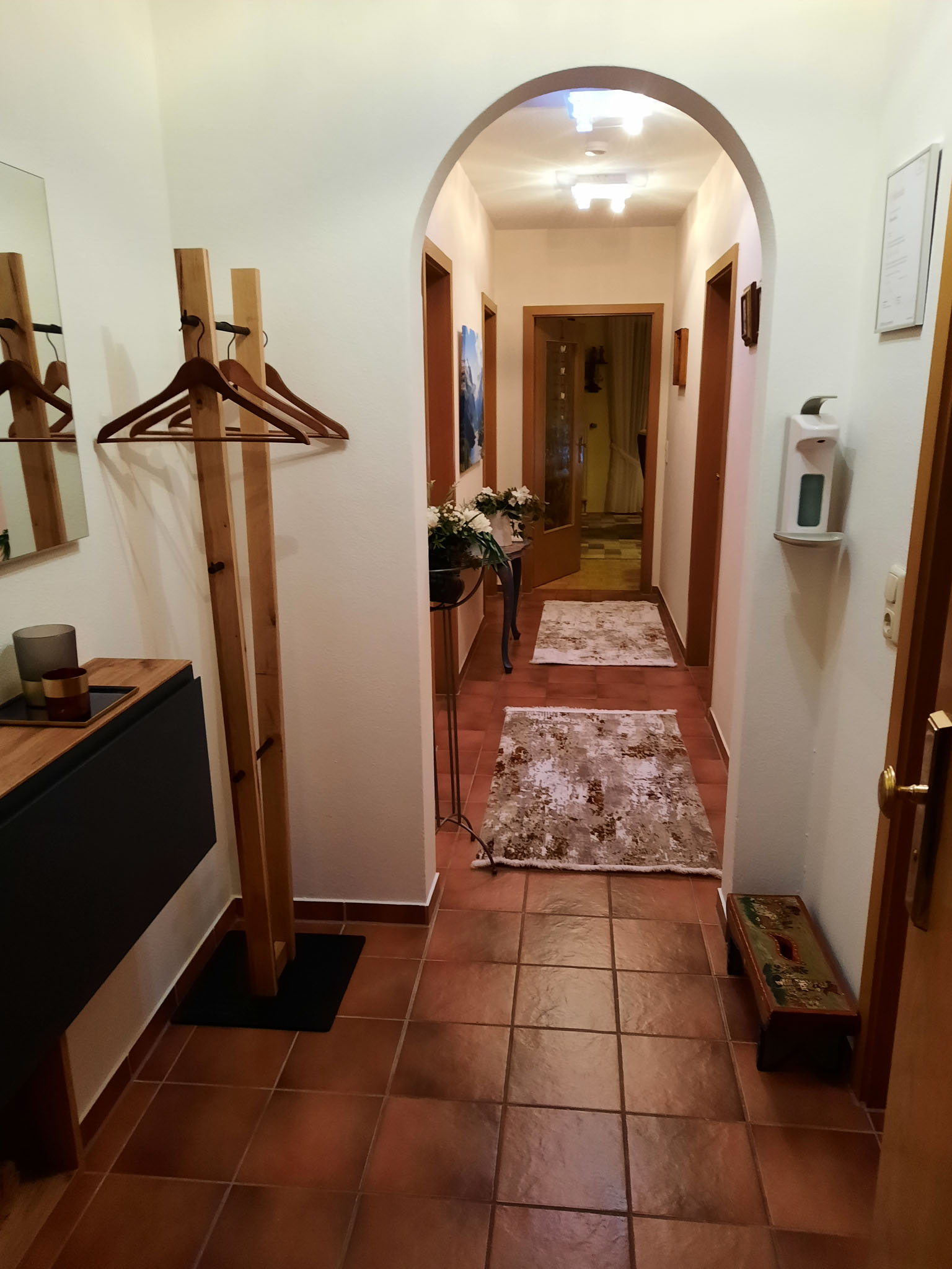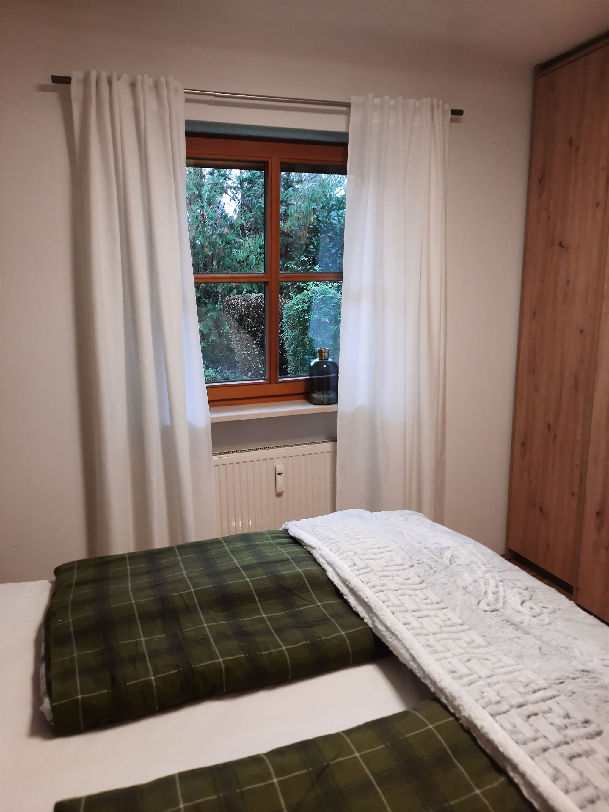 Die komfortable Ferienwohnung 77 m² für 1 bis 3 Personen im Erdgeschoss. Das Wohnzimmer ist mit zwei weißen Ledersofas 3,2, und einem Fernsehsessel sowie Schrank, Musikanlage, Fernseher, DVD-Player, WLAN, ausgestattet und hat einen direkten Ausgang auf die ca. 32 qm große Terrasse mit Blick auf den Predigtstuhl. Die Einbauküche, mit Geschirrspüler, vielen elektr. Küchengeräten wie z.B. (Kaffeemaschine, Espresso-Maschine, Eierkocher, Wasserkocher Toaster, elektr. Aufschnittmaschine, Mixer, Waffeleisen und noch einiges mehr) Gewürze, eigentl. alles was man zum Kochen und zum Backen benötigt. Die Küche hat ebenfalls eine Tür zur Terrasse. Im Sommer praktisch, wenn man draußen frühstücken möchte. Die Küche ist mit einer neuen Eckbank und Stühlen eingerichtet. Schlafzimmer mit Doppelbett (ab November 23 neu mit verstellbaren Lattenrosten, Lichtsensoren am Bett, großer Einbauschrank, kleiner Wandsafe im Schrank. Gäste-o.Kinderzimmer: mit Einzelbett, Kleiderschrank, großer Spiegel. Bad: mit Dusche und Wanne, schöne helle Badmöbeln und Föhn, beleuchteter Kosmetikspiegel, klappbarer Sitz in der Dusche, Haltegriff beim Aussteigen aus der Dusche sowie einem stabilen Badhocker .Diele/Flur: mit Garderobe neu ab Januar 24. Außerdem halten wir für unsere kleinen Gästen 1 Kinderhochstuhl , Reisebettchen mit Wickelauflage bereit.Ein paar Kinderfilme und CDs sowie Bücher und Spiele für Kinder und Erwachsene stehen unseren Gästen ebenfalls zur Verfügung.Die Terrasse ist mit Gartenmöbeln, Auflagen, Grill, Markise und zusätzlichem großen Sonnenschirm bestückt. Eine Ferienwohnung in der man sich wohlfühlen soll.