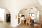 Unsere Wohnung Katharina besticht durch ihre individuelle Ausstattung mit einem Wohn- und Essbereich mit Gewölben, sowie einer gemütlichen Sitzecke mit Kachelofen.