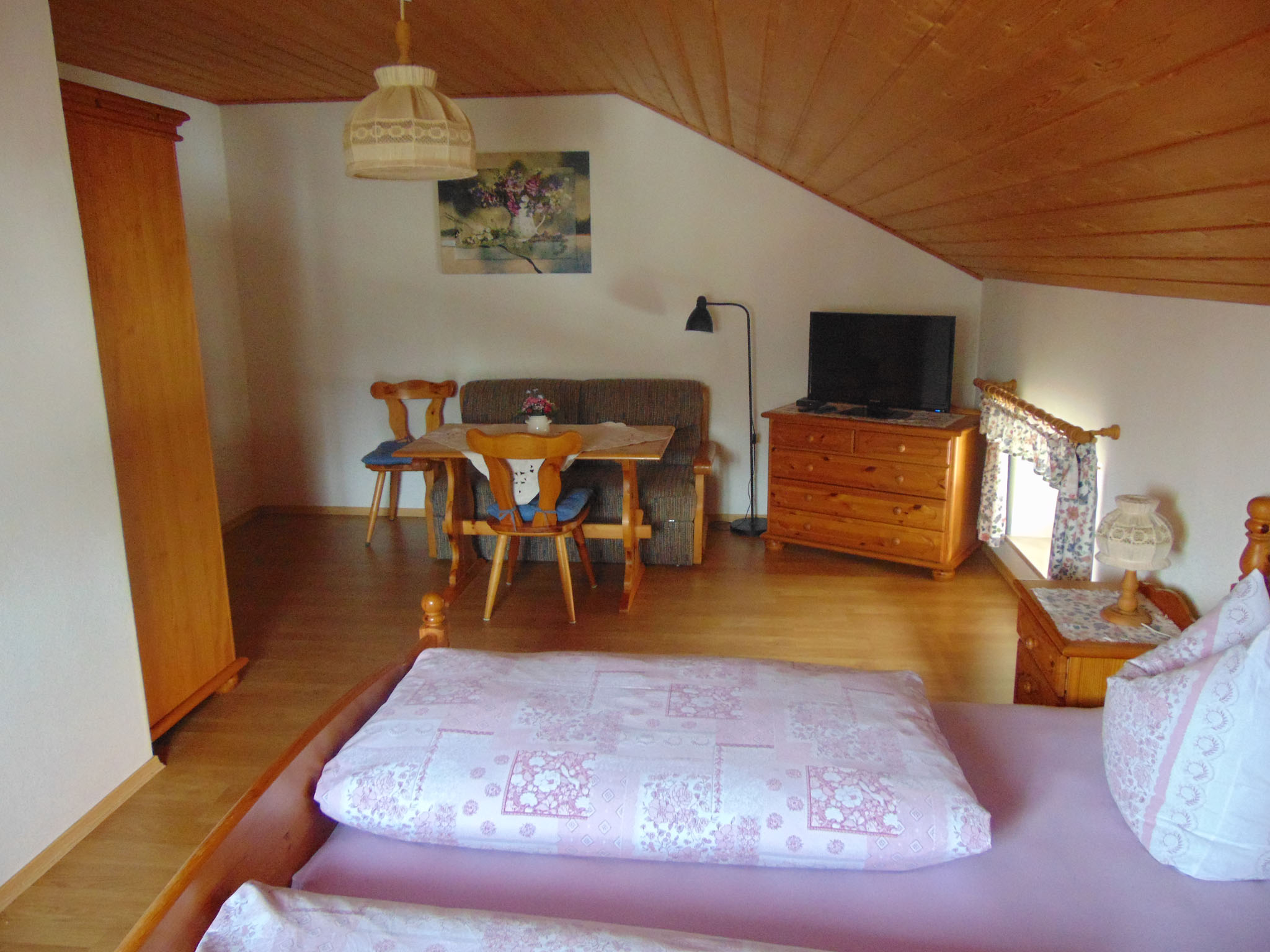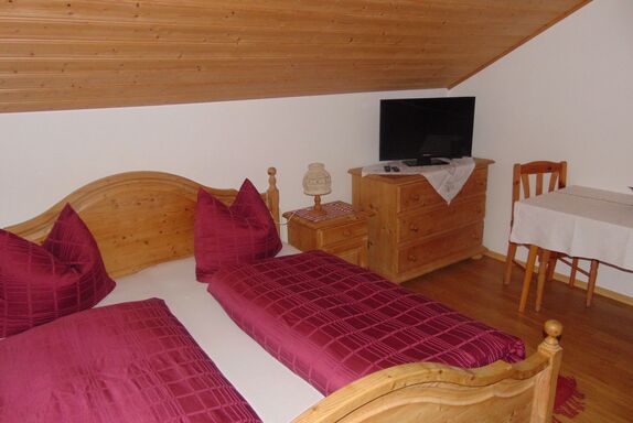 Unsere gemütliche Ferienwohnung Abendsonne ist im Landhausstil eingerichtet. Die großzügige Dachgeschosswohnung besteht aus zwei Schlafzimmern (Doppelzimmer, davon eines mit zusätzlicher Schlafcouch), Küche mit Spülmaschine, Diele und Balkon. Jedes Schlafzimmer ist mit einem eigenen Badezimmer und Smart-TV ausgestattet. Kostenfreies WLAN und ein Parkplatz direkt vor der Haustür sind selbstverständlich.