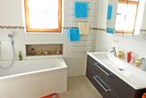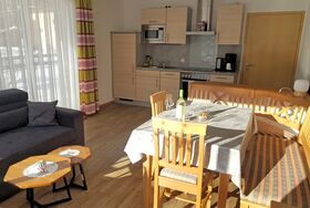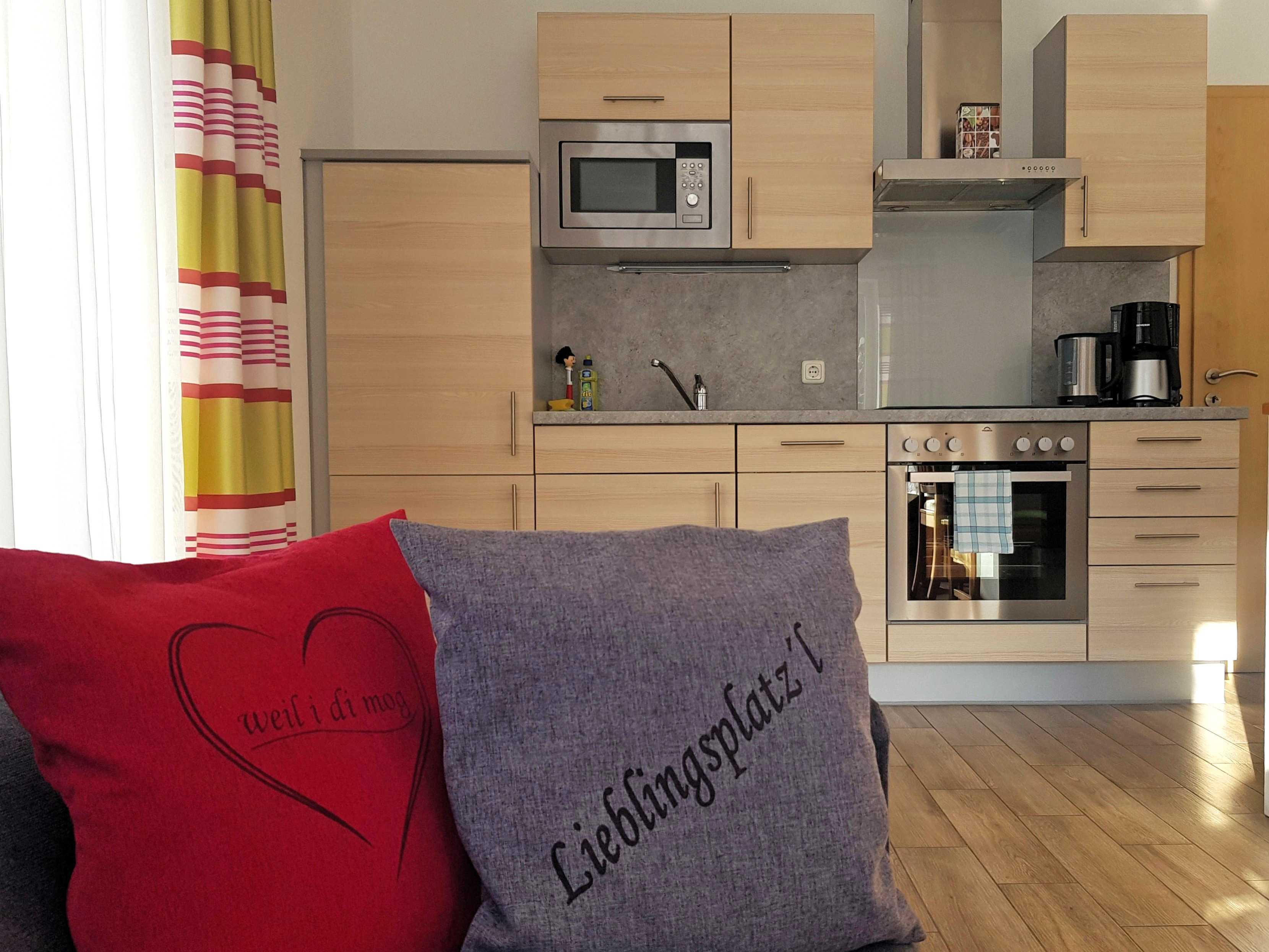Sie wohnen in einer sehr hellen, lichtdurchfluteten, gemütlich und großzügig eingerichteten Ferienwohnung Kaiserblick 75 qm im Erdgeschoss, mit Terrasse und herrlichem Ausblick auf den Zahmen Kaiser. Zwei separate Schlafzimmer, einmal mit Doppelbett und einmal mit zwei Einzelbetten und ausziehbaren Schlafsofa. Das exklusive Badezimmer mit Regendusche, Badewanne, WC, Fön und Fußbodenheizung ist eine kleine Wellnessoase, in dem sie gut entspannen können. Der große, sonnige, Wohnraum mit gemütlicher Couch, Flat-SAT-TV und Essplatz hat eine modern ausgestattete Küchenzeile mit Herd/Backofen, Spülmaschine, Kühlschrank/Tiefkühlfach, eine Eckbank mit Esstisch und ein Sofa, Flachbild-TV mit SAT-TV und kostenloses WLAN. Von hier gibt es einen direkten Zugang in den wunderschönen, großen Garten mit Terrasse, Liegewiese und Spielmöglichkeiten für die Kinder. Hunde und Haustiere dürfen nicht mitgebracht werden. Die Wohnung befindet sich im Erdgeschoss, hat aber vor der Haustüre eine Eingangsstufe. Daher ist sie sehr gut für Gehbehinderte geeignet, aber leider nicht für Rollstuhlfahrer. Familien mit Kindern sind bei uns herzlich willkommen.
