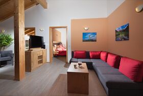 Komfortable Ferienwohnung, 120 m², 2 getrennte Schlafzimmer, großer Wohnraum mit Sichtdachstuhl, Küche mit Ceranfeld-Herd, Backofen, Geschirrspüler, Kühlschrank mit Gefrierfach, Kaffemaschine und Toaster. Moderne, gehobene Ausstattung, Flachbild-Smart-TV und kostenloses Wlan. Balkon mit Blick auf den Watzmann, Aufzug im Haus, gesamte Wohnung ist barrierefrei, aber nicht rollstuhlgerecht, Carport.