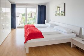 Unsere Traum-Ferienwohnung Alpenblick ist ein wahres Schmuckstück in Bad Aibling! Sie bewohnen das komplette oberste Stockwerk (75 qm) eines stilvoll renovierten Jahrhundertwende-Hauses in äußerst ruhiger Lage zwischen Therme und Zentrum (jeweils 5 Gehminuten). Vom großzügigen Südbalkon genießen Sie einen einzigartigen Blick auf die Alpen. Sonnenliegen und -schirm ermöglichen Entspannung pur und auf dem Essplatz lässt sich's herrlich frühstücken. Die lichtdurchflutete Wohnung bietet durch ihre neue und moderne Möblierung allen Komfort. Sie besteht aus zwei Schlafzimmern mit je zwei Doppelbetten (Massivholzbetten mit hochwertigen Hygienematratzen), einem Wohnzimmer mit Sofa, Relaxliege und Schreibtisch, einer bestens ausgestatteten Küche (Spülmaschine, Mikrowelle, Senseo-Kaffeemaschine,...), mit Esstisch sowie einem Bad mit zwei Fenstern. Die Wohnung ist mit Design-Holzboden, einem großen Flachbildfernseher (Satellit), W-LAN (gratis), Stereoanlage, Waschmaschine (gegen Gebühr), Haartrockner sowie Bettwäsche und ausreichend Geschirr- und Handtüchern ausgestattet. Im Garten kann man auf Sonnenliegen unter den Obstbäumen die Seele baumeln lassen...