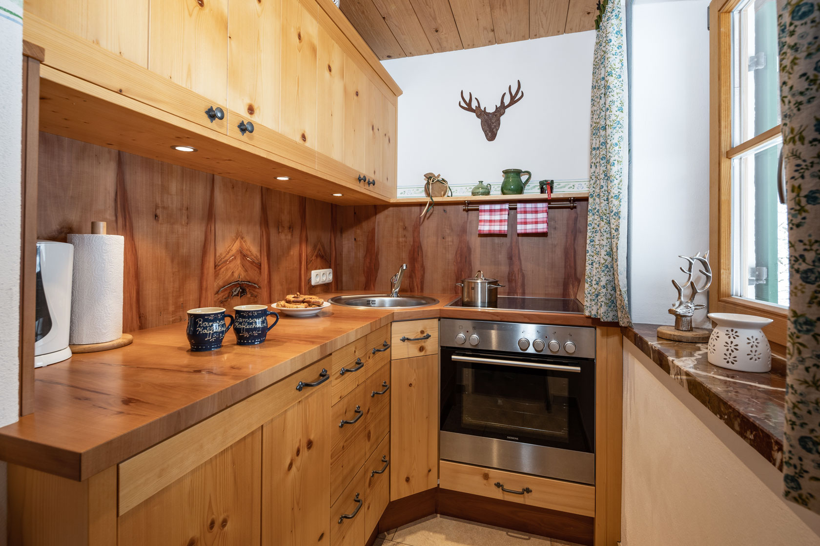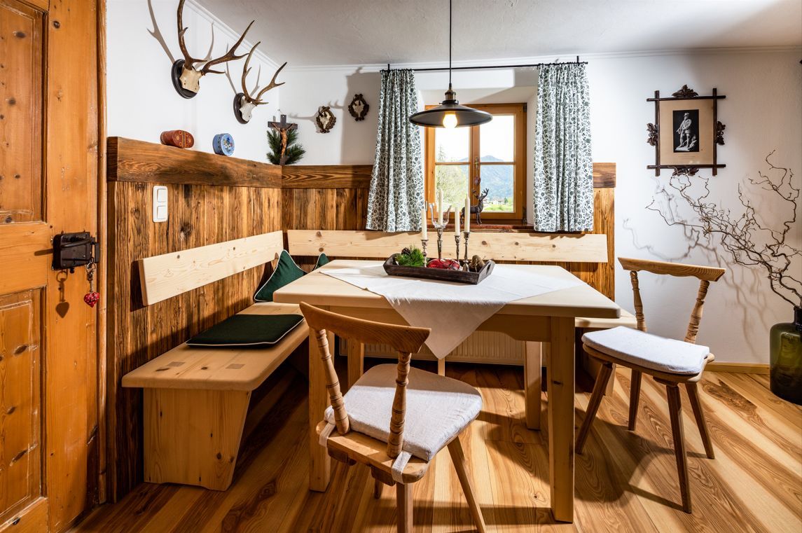 Unsere liebevoll renovierte Nichtraucher-Ferienwohnung, traditionell und denkmalgeschützt (Massivholzmöbel, Holzdecken und -böden), mit allem sonstigen Komfort eingerichtet, vermittelt eine unvergleichlich heimelige und gemütliche Atmosphäre. Vom Ostbalkon aus haben Sie einen herrlichen Blick zum Watzmann und die übrige Bergwelt.Die Bettengröße beträgt 0,90 x 2,00 m. Die Wohnung befindet sich im 1. Stock im Zuhäusl (angrenzendes Nebengebäude). Der Internetzugang steht Ihnen im Haupthaus zur Verfügung.