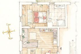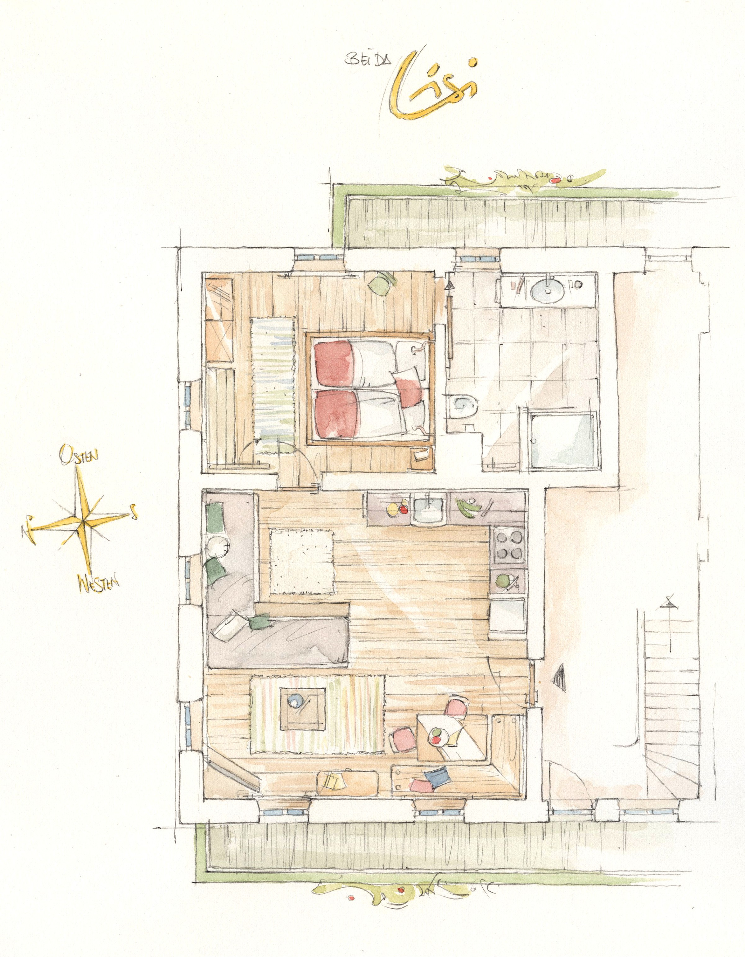 Die Sonne grüßt schon früh am Morgen und lässt Sie den Tag motiviert beginnen. Dank separatem Schlaf- und Wohnbereich kann verschiedenen Interessen nachgegangen werden! Nach einem ausgiebigen Wandertag steht der Entspannung auf der großen Terrasse oder den beiden Ost-West-Balkonen nichts mehr im Wege! Auf 60 qm finden Sie eine gemütliche Wohnküche, ein Schlafzimmer und ein großzügiges Bad mit Dusche und WC.