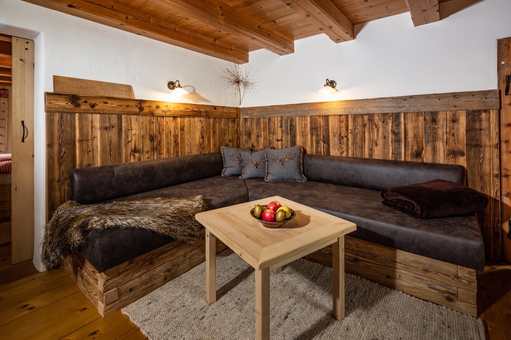 Der Beda besticht durch seine klare, offene Form und den natürlichen Materialien der traditionellen Bauweise mit Altholz. Hier finden Sie einen Ort der Entspannung mit unvergesslichen Ausblicken in das umliegende Panorama des Nationalparks Ramsau. Der Beda ist auf 60 qm mit allen Komforts ausgestattet. Der offene Wohn-Essbereich mit Eckbank, Küche und gemütlichen Schlafdiwan garantiert eine gemütliche Zeit.