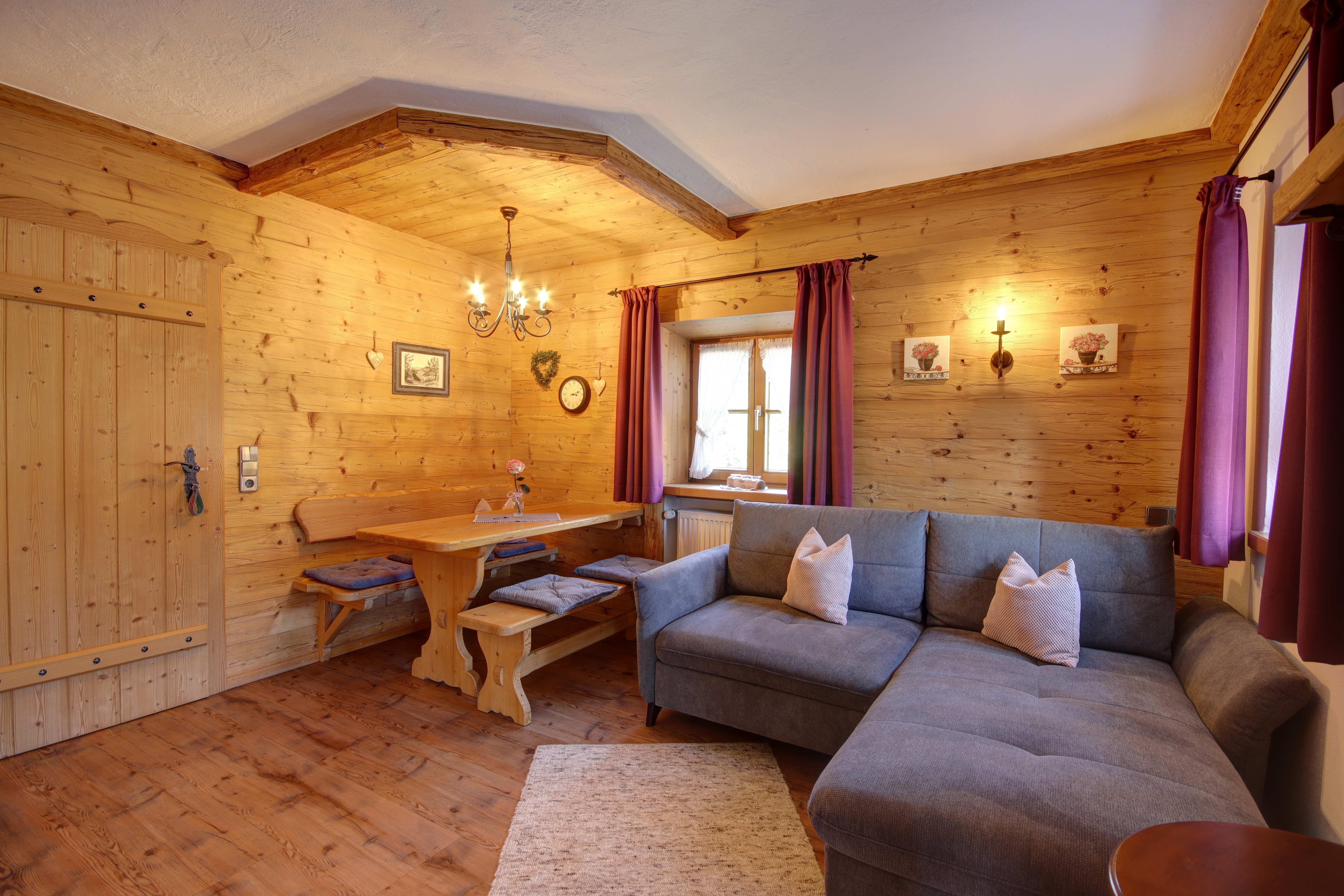 5-Sterne-Komfort für Ihren Urlaub in unserer rustikalen und mit viel Holz ausgestatteten Ferienwohnung Almhütte! 2 Schlafzimmer, 2 Bäder, separate Küche, Wohnzimmer, Balkon mit Eßbereich und Bergblick.