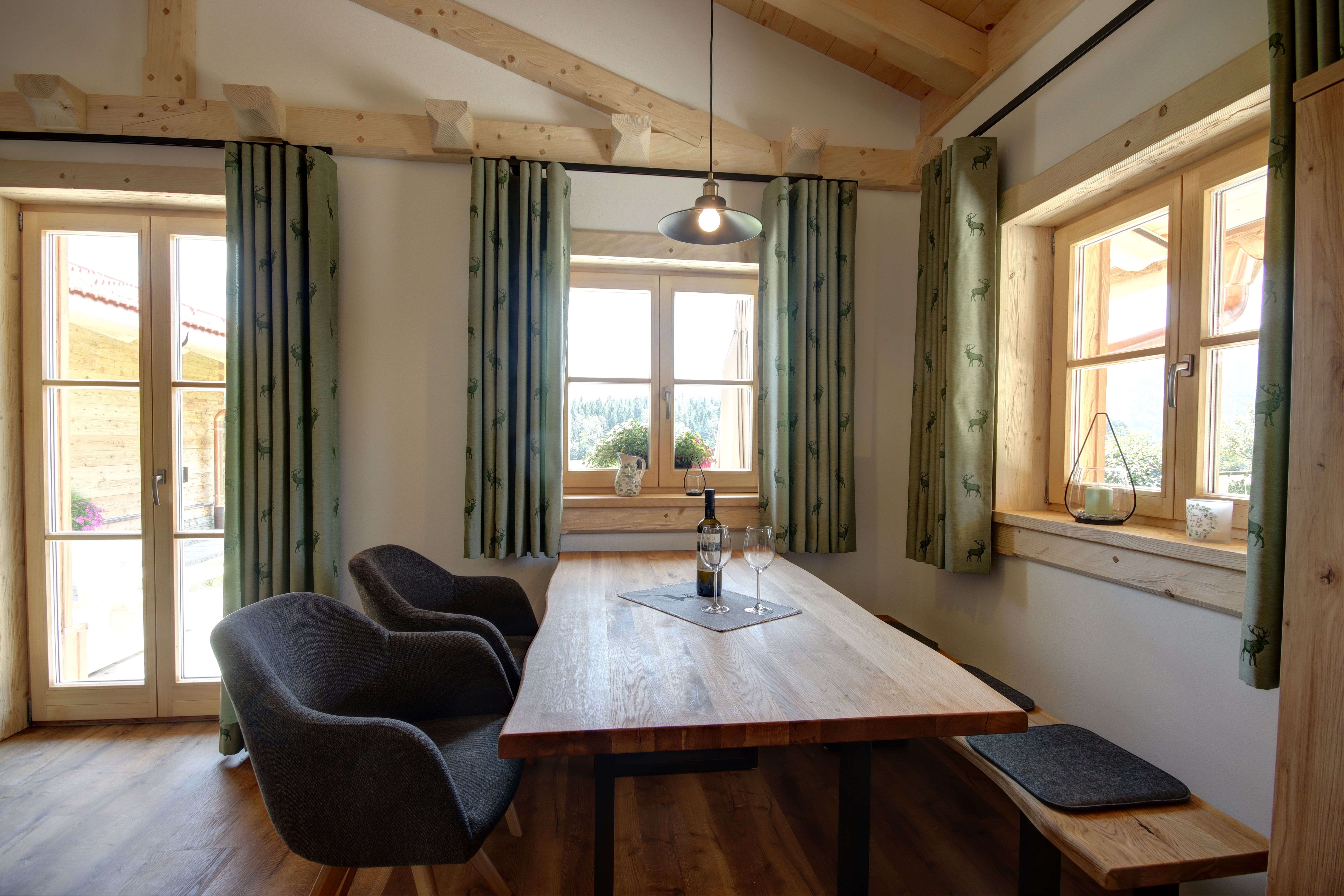 Neu seit Juli 2023: Zwei exclusive Chalets mit freiem Bergblick! Unsere Ferienhäuser wurden mit Holz aus dem eigenen Wald im typischen Almstil erbaut und rustikal und hochwertig ausgestattet. Zwei Schlafzimmer, geräumige Küche mit stilvollem Eßbereich und angrenzendem Wohnbereich mit großzügiger Couch für die ganze Familie. Wohlfühlambiente im Bad mit finnischer Sauna und separates WC. Große private Terrasse nach Süden mit Sitzecke, Liegen, Sonnenschirm und Grill sowie Liegewiese. Im Winter direkter Einstieg in die Langlaufloipe!