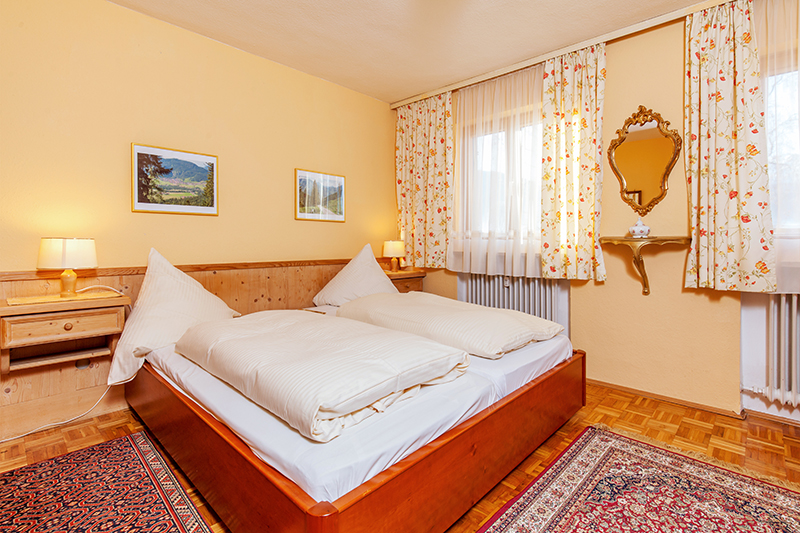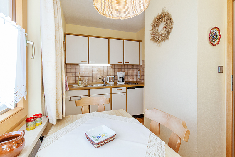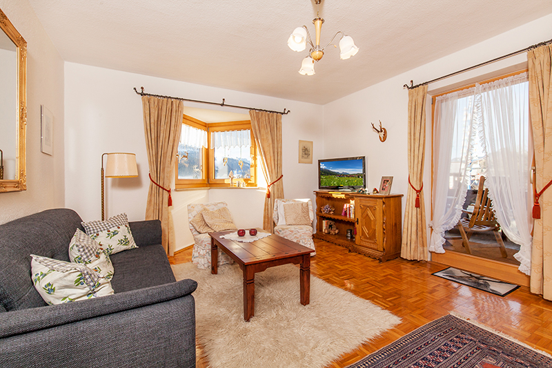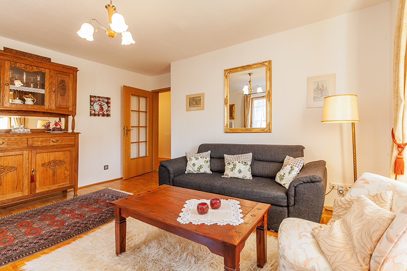 Unsere 53 m² große, gemütliche Ferienwohnung verfügt über ein Schlafzimmer mit Doppelbett sowie einen komfortablen Wohnraum mit Eß- und Sofaecke. Das Sofa kann bei Bedarf aufgebettet werden. Die Küche ist gut ausgestattet. Genießen Sie den herrlichen Bergblick auf unseren beiden möblierten Balkonen. Der zum Haus gehörende Parkplatz ist von der Wohnung aus einsehbar.