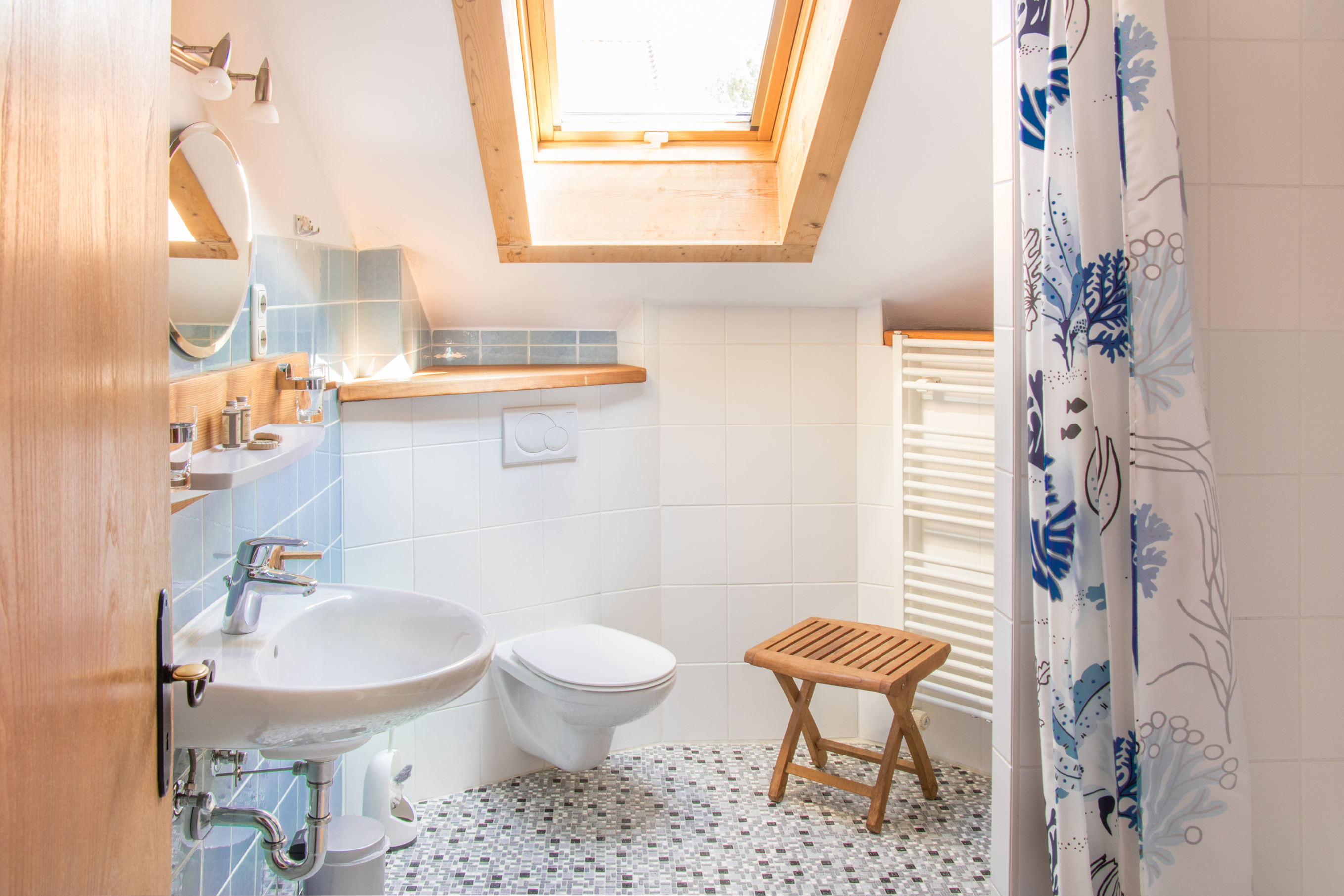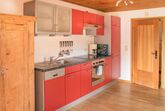 Das 1 Raum Appartement Bernadette liegt im Dachgeschoß und hat eine komplett ausgestattete Küche mit Backofen, Spülmaschine, Toaster, Wasserkocher und eine Kaffemaschine.