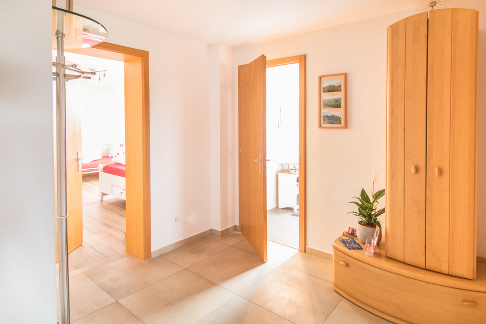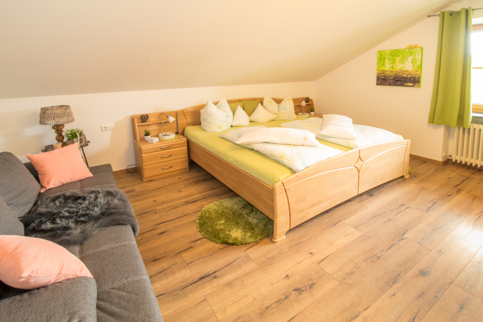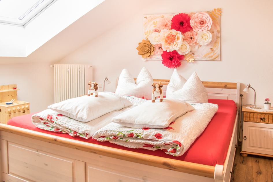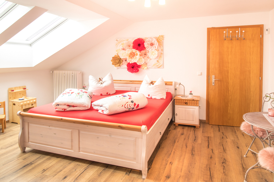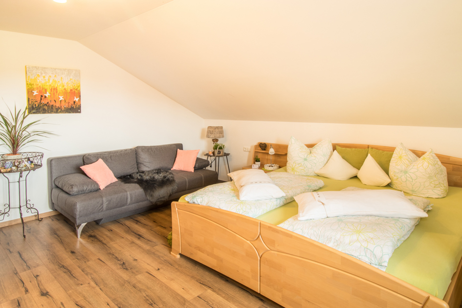 Unsere gemütliche großräumige Ferienwohnung ist mit zwei Schlafzimmern, Küche, Bad (Dusche und WC) und Balkon mit Blick auf die Ratzinger Höhe ausgestattet. Jede Ferienwohnung enthält eine Kinderspielecke und Babyausstattung. Abwechslung bei Regenwetter bietet auch unsere allgemein zugängige Verkleidungskiste. Unsere Wohnungen sind Nichtraucherwohnungen. Es besteht die Möglichkeit auf dem Balkon zu rauchen.