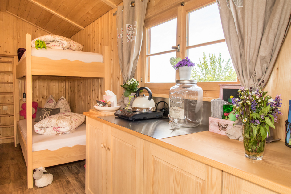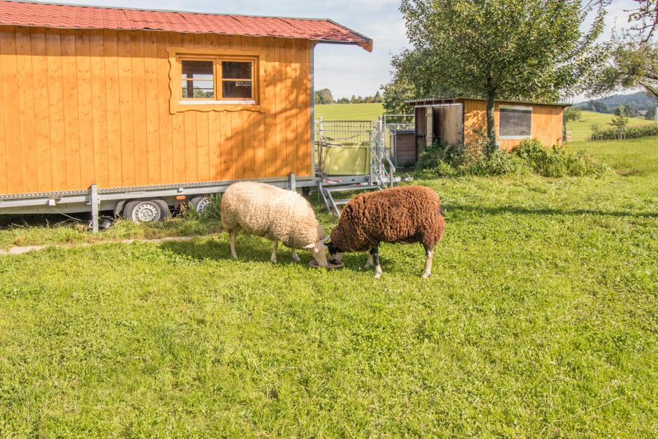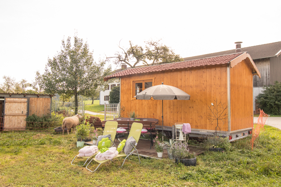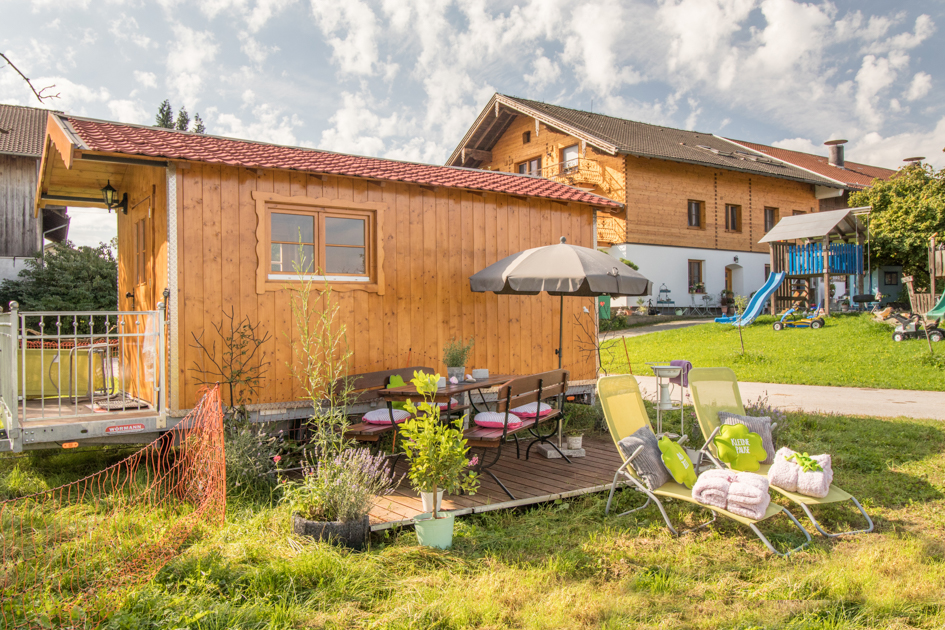 Schlafen im Schäferwagen-Häusle mitten in der Natur - umgeben von saftigen grünen Wiesen mit einem herrlichen Blick auf die Ratzinger Höhe, die Chiemgauer Berge von der Kampenwand über die Hochries bis zum Wendelstein. Natur erleben - hautnah und mit allen Sinnen -, Ruhe spüren und abtauchen in ein Leben ohne Alltagsstress und Stadtlärm. Kurz gesagt: Ein Erlebnis für alle Sinne bei uns auf dem Bauernhof.
