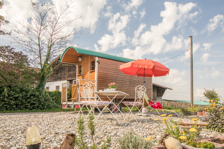 Unser mit Liebe und Blick für's Detail hergestellter nostalgischer Schäferwagen mit ca. 3 m Länge, 1,60 Breite und 2 m Höhe (Innenmaß) ist komplett aus Holz. Auf Ihrem Gartenteil stehen Ihnen zwei Sonnenliegen, ein Sonnenschirm und eine Sitzgruppe für zwei Personen zur Verfügung