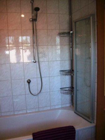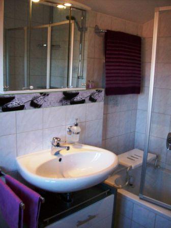 Im hellen Badezimmer versorgen wir sie mit kuschligen Bade- und Handtüchern, Kleenex, Seife und Toilettenpapier. Das Bad hat ein sichtgeschütztes Fenster, WC, Waschtisch, Spiegel und eine Wanne mit einer Glasabtrennung zum Duschen. Ein Badewannensitz erleichtet das Duschen zusätzlich.