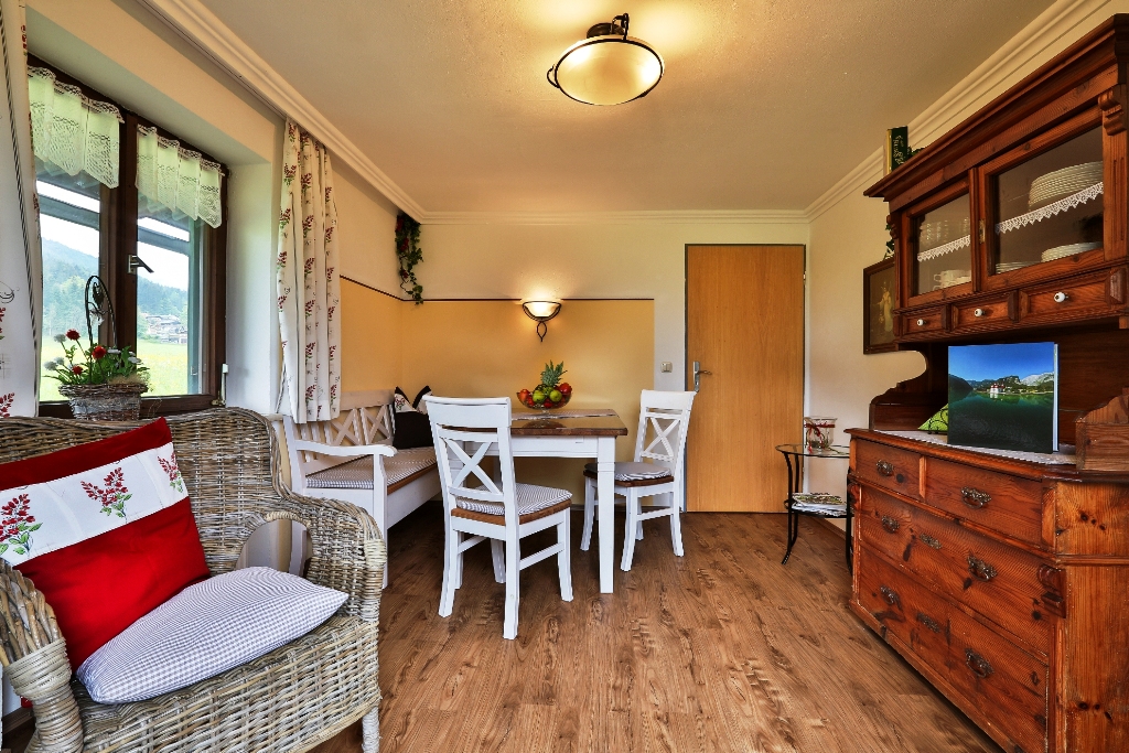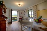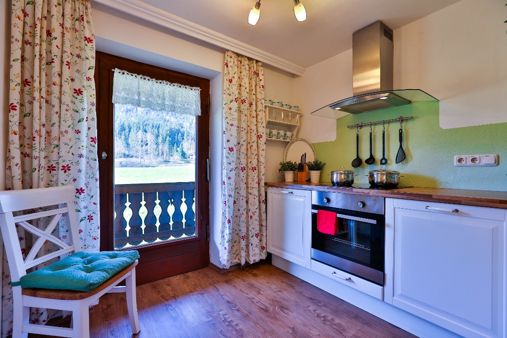Das Ferienhaus mit 70 qm groß (2-4 Personen) ist neu renoviert, verfügt über ein gemütlich eingerichtetes Wohnzimmer mit Couchecke, Couchtisch und großem Flachbild-Sat-TV. Die sehr schöne, gut ausgestattete Einbauküche (Toaster, Kaffeemaschine, Wasserkocher, E-Herd mit Backofen) wird Ihnen gefallen. Die Wohnung bietet ein separates Esszimmer. Über den Flur erreicht man die zwei Schlafzimmer, beide mit Doppelbett. Das Badezimmer verfügt über Dusche/Waschbecken. Separates WC mit Fenster und Waschbecken. Die Wohnung verfügt über einen großen Balkon nach Osten und Süden, von dem man den freien Panoramablick auf die Berge genießen kann.