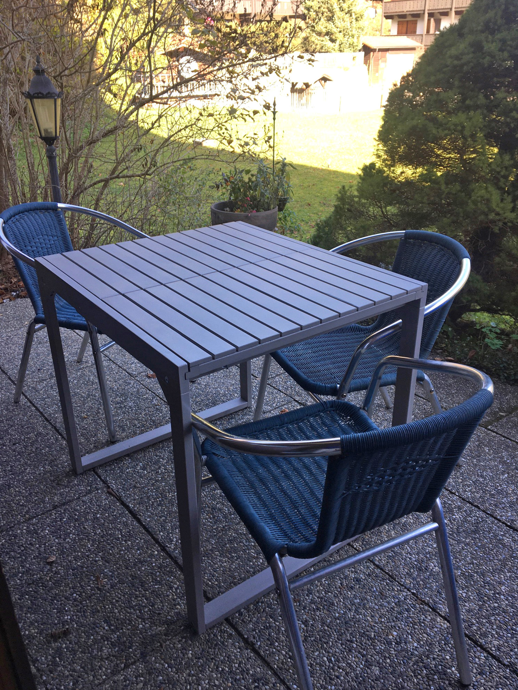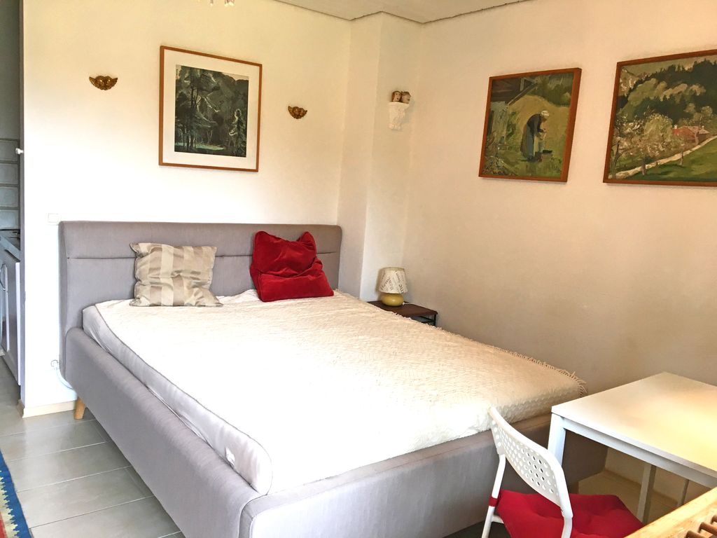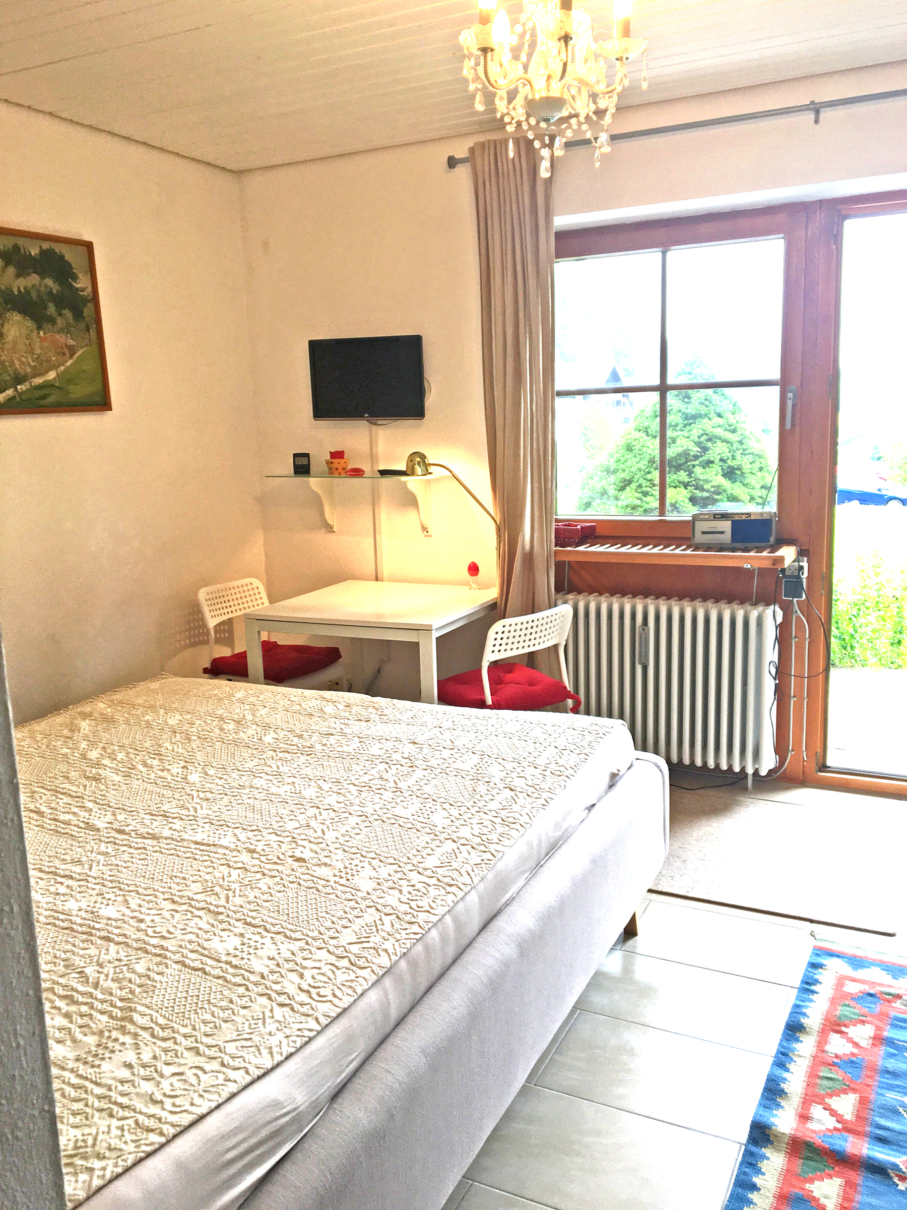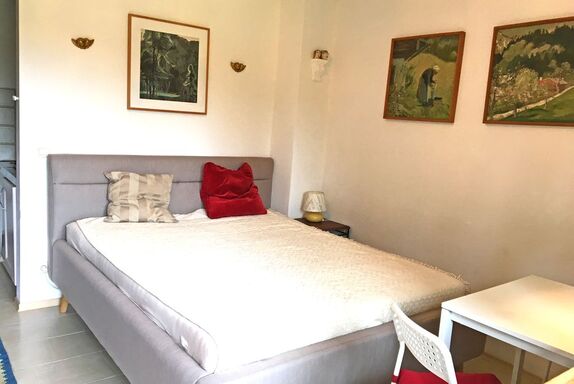 Sehr schöne und geschmackvoll eingerichtete Ein-Zimmer-Ferienwohnung in ruhiger Bergwelt. Schöner Ausblick von der Terrasse mit Gartenmöbeln. In unserem Apartment gibt es ein komfortables Doppel-Polsterbett 160x200 cm, mit neuen 7-Zonen-Kaltschaummatratzen, eine Ess- und Sitzecke, einen Schrank, Flat-Sat-TV mit integriertem DVD Player und kostenloses WLAN. Voll ausgestattete Küchenzeile mit Backofen. Ein elektrischer Grill-Raclette kann innen und außen genutzt werden. Ideal für Singles und Paare, gerne auch mit Baby und Hund. Gerne darf auf der Terrasse geraucht werden, ein Aschenbecher ist für die Raucher vorhanden.