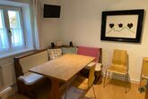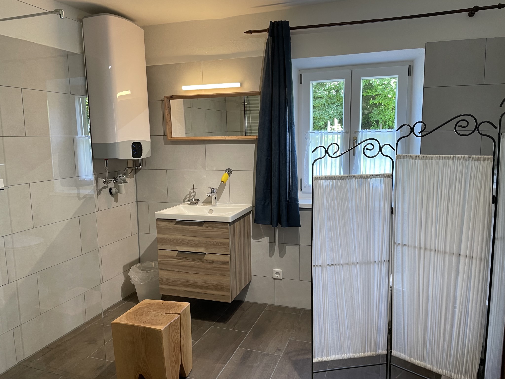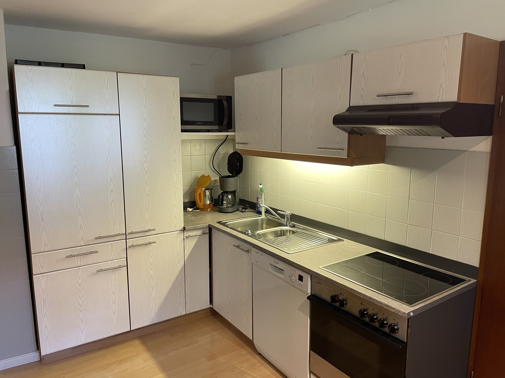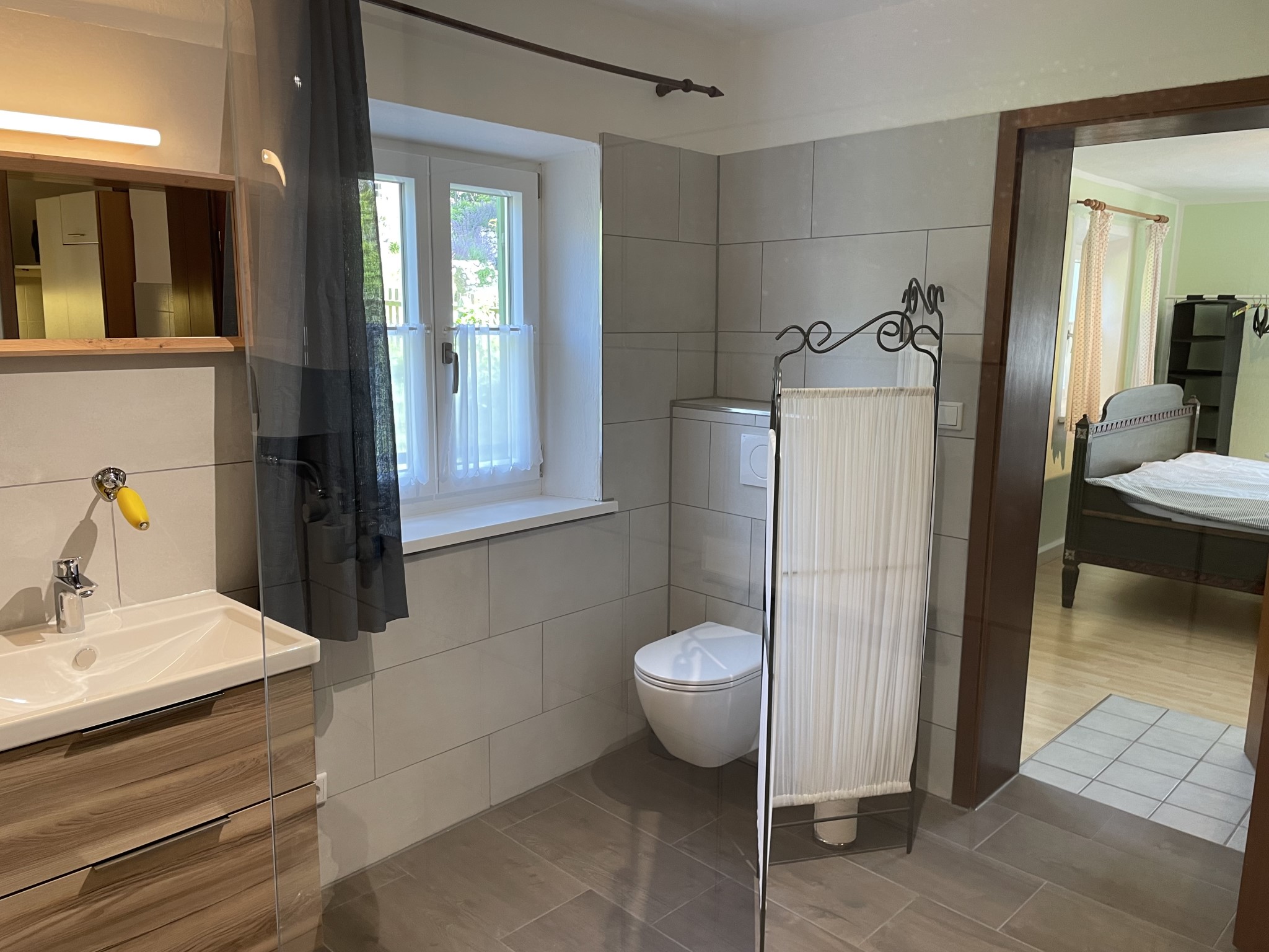 Es handelt sich um ein kleines Appartement, in dem es eine gemütliche Wohnküche gibt, in der eine komplette kleine Küche vorhanden ist. Auch Spülmittel, Spülschwamm, Bürste und Geschirrhandtücher sind vorhanden, so dass Sie Ihr Gepäck gering halten können. Das Bad ist neu mit Fenster in den Garten. Das Schlafzimmer ist klein und gemütlich mit einem originalen Bauernehebett mit Bauernmalerei, ebenfalls aus den 1920ern, so dass der Charme des alpinen Raumes und der Charakter des Hauses innen und außen stimmig sind. Es ist ein kleiner Ofen im Schlafzimmer, so dass bei Bedarf auch ein gemütlich prasselndes Feuer möglich ist (Holz vorhanden, kann dazu gekauft werden). Eine Zetralheizung ist vorhanden. Die Warmwasserbereitung findet über Boiler statt, welche über Solarstrom gespeist werden, wenn das Wetter es zuläßt und über regulären Stadtstrom gespeist werden können, sollte die Sonne auf sich warten lassen.