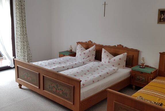 Schöner familienfreundlicher Bauernhof im Ortsteil Raiten, große Zimmer mit DU/WC, Aufenthaltsraum mit TV, reichhaltiges Frühstück, 2 schöne Ferienwohnungen für bis zu 5 Pers. mit je 2 Schlafzimmern, bei allen FeWo Frühstück möglich, zusätzlich 2 FeWo im neuen Zuhaus, Schlafzimmer, Küchenzeile, Wohnschlafraum, Grillplatz, Kinderspielplatz, Alm. Haustiere nicht erlaubt.