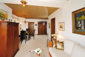 Die ruhige Ferienwohnung hat einen eigenen Zugang und verfügt über ein Wohnzimmer, ein Schlafzimmer mit Doppelbett, eine komplett eingerichtete Küche mit Kühlschrank, E-Herd, Spülmaschine und Mikrowelle, Bad/WC, Sat-TV, Stereoanlage und eine großzügige Südhang-Sonnenterrasse. Ein Pkw-Stellplatz ist für Sie reserviert. Bettwäsche, Handtücher und Geschirrtücher sind vorhanden.