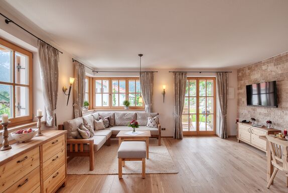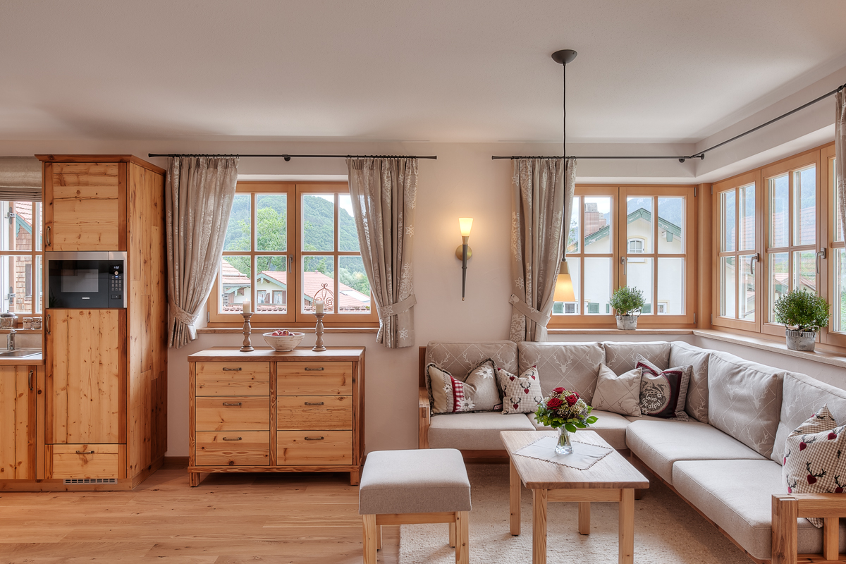 Im Urlaub zu Hause sein – das bieten wir unseren Gästen. Nehmen Sie sich Zeit für sich und genießen Sie die eindrucksvolle Romantik der Ruhpoldinger Alpenwelt. Unsere exklusiven Wohnungen befinden sich in bester Lage: nur 5 Gehminuten vom Ortskern entfernt, am Hang gelegen mit Ausblick auf das malerische Alpenpanorama und in unsere liebevoll angelegten Gärten, die Namensgeber unserer „Ferienwohnungen im Rosengarten“ sind. All unsere großzügig geschnittenen Wohnungen sind in alpenländisch-elegantem Stil gehalten und hochwertig mit Eichenholzfußböden, maßgefertigten Schreinermöbeln, vollständig ausgestatteter Küche, Kachelofen, Zirbenholzschlafzimmern und WLAN gestaltet. Ihr Auto können Sie in der hauseigenen Tiefgarage mit angrenzendem abschließbaren Abstellraum parken. Ihr Wohlgefühl in Ihrem Urlaub ist unsere Herzensangelegenheit – wir freuen uns auf Sie.