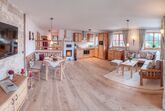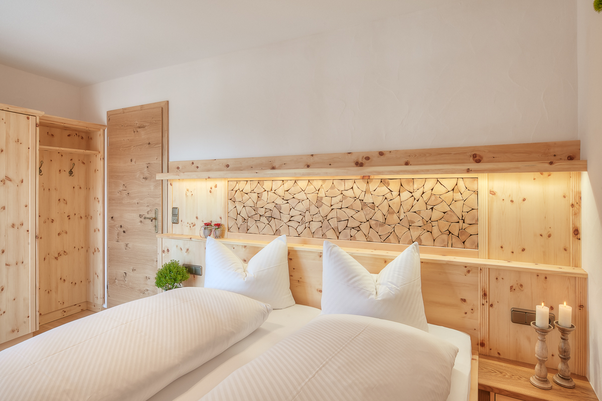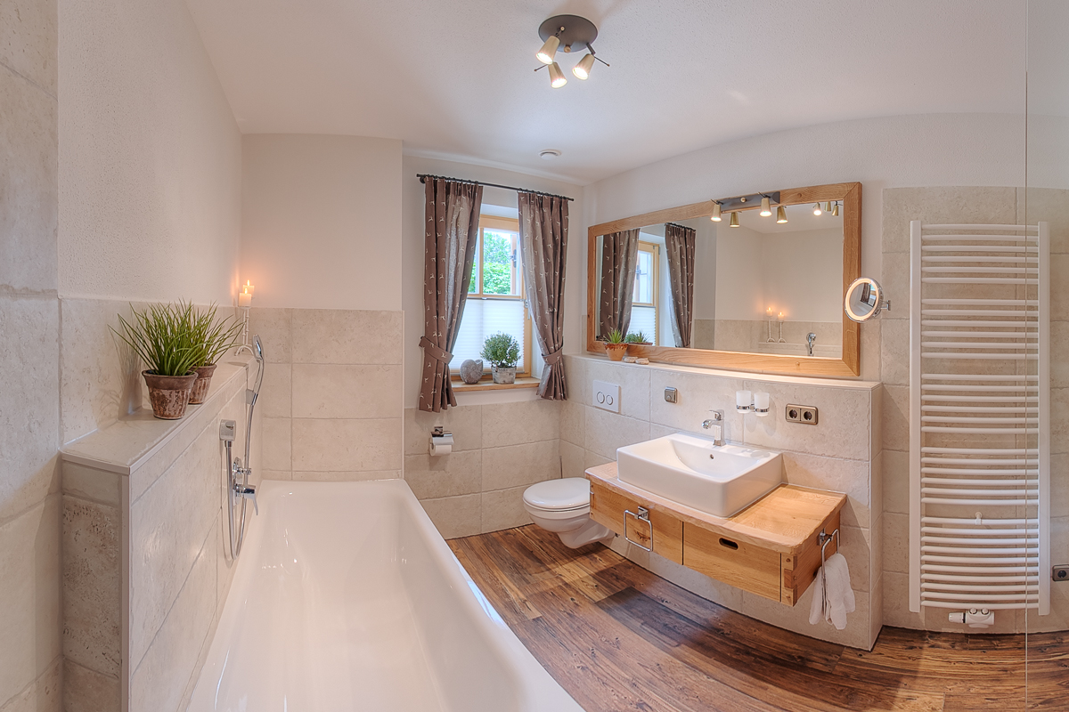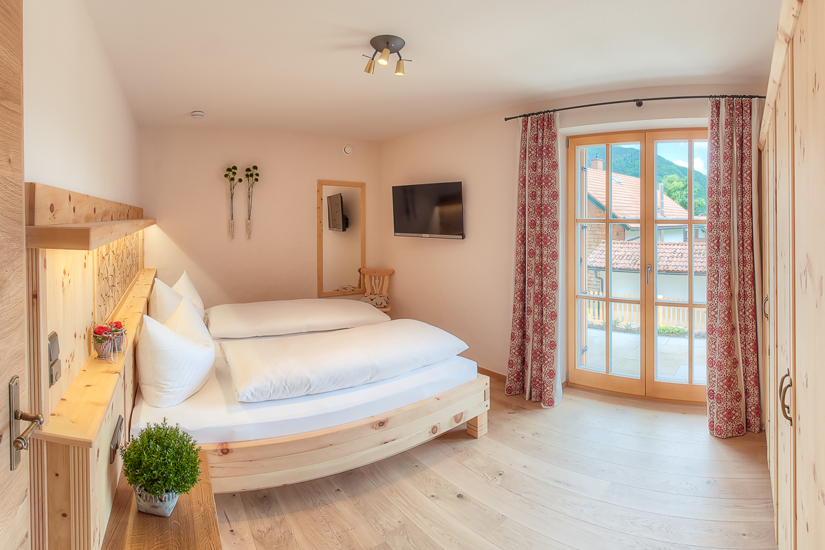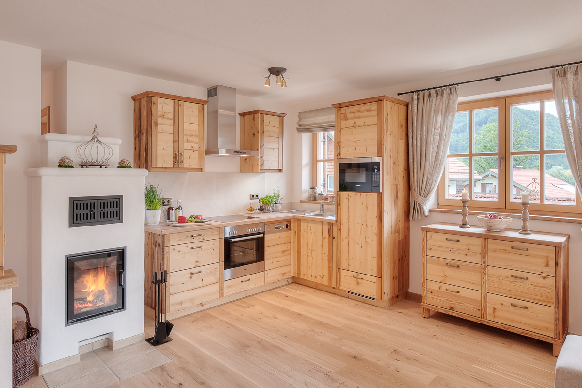 In der Ferienwohnung Jasmin (67m2) fällt es ganz leicht, den Alltag hinter sich zu lassen und im Urlaub anzukommen. Die Erdgeschosswohnung ist in alpenländisch-elegantem Stil gehalten und hochwertig eingerichtet. Wohnraum: Der großzügige, offene Wohnraum ist mit einer vollausgestalteten Küche in Altholzqualität, einem behaglichen Kachelofen zum selbst Anheizen, einer rustikalen Essgruppe und einem großen Wohnbereich mit gemütlichen, geschreinerten Polstermöbeln, Smart-TV und WLAN ausgestattet. Der Wohnbereich führt ebenerdig auf die Süd-Terrasse mit Grill hinaus. Von hier genießen Sie einen malerischen Blick auf das Alpenpanorama. Schlafzimmer:Das Schlafzimmer mit Doppelbett und TV ist zur Gänze aus Zirbenholz gearbeitet und sorgt, dankt der ätherischen Öle der Zirbe, für einen erholsamen Schlaf. Vor dem Schlafzimmer liegt die zweite Terrasse der Wohnung; östlich ausgerichtet lädt sie dazu ein, mit der Sonne in den Tag zu starten. Bad:Das Badezimmer mit alpinem Charme verfügt über eine Badewanne, eine Dusche, einen Waschtisch und ein WC. Lage & Sonstiges:Die Wohnung befindet sich in bester Lage: ruhig, aber dennoch zentral.Ihr Auto können Sie in der hauseigenen Tiefgarage mit angrenzendem abschließbaren Abstellraum parken.