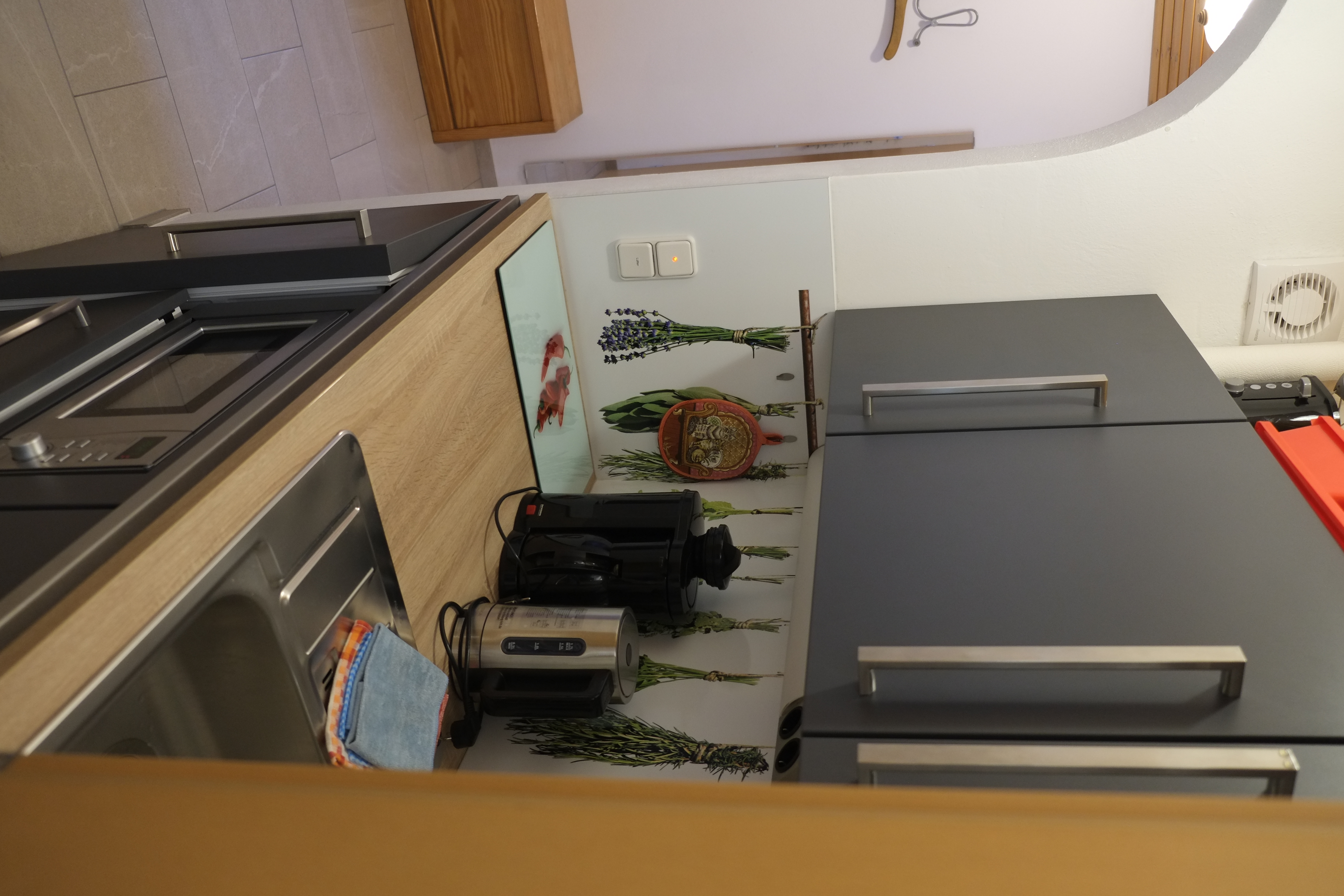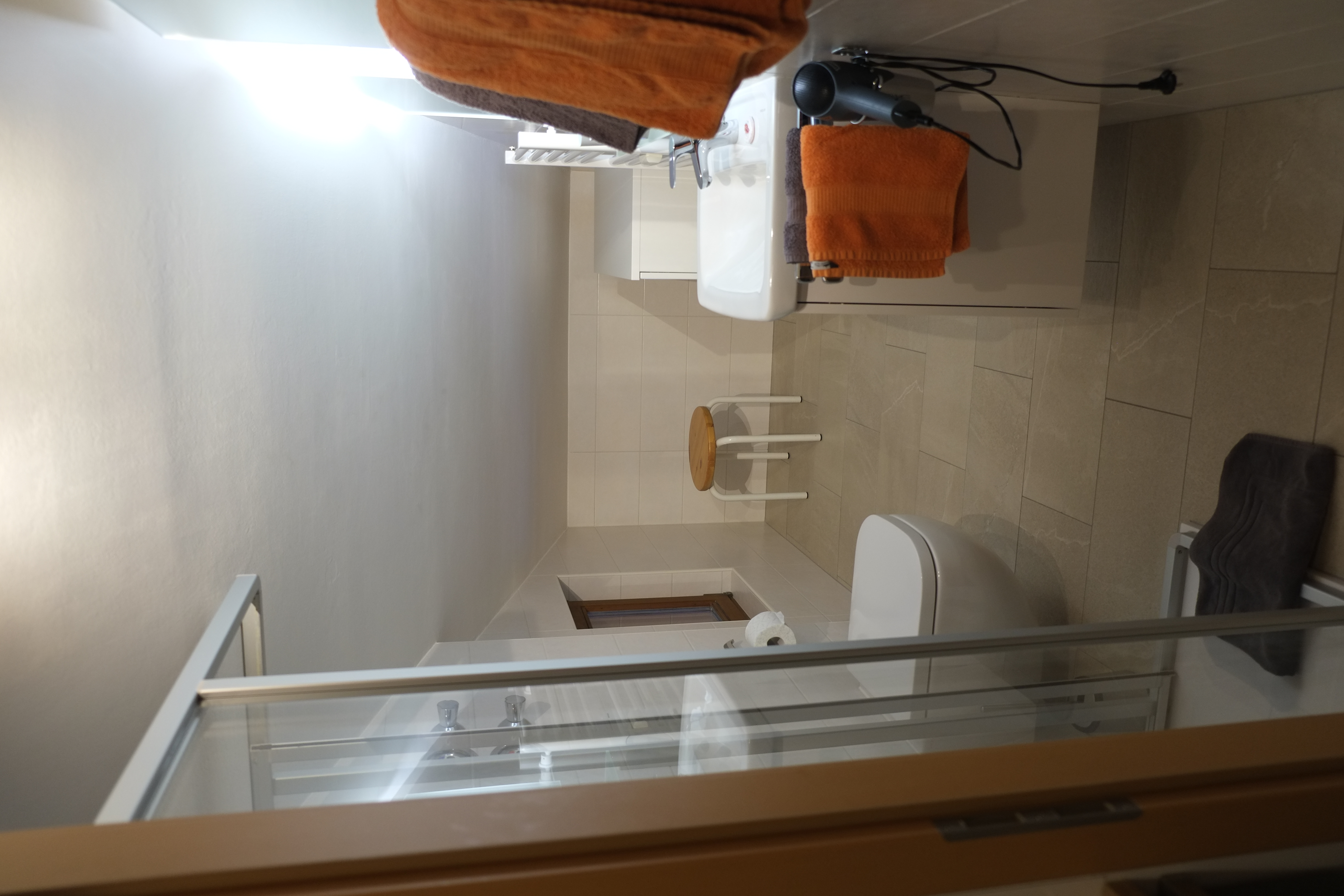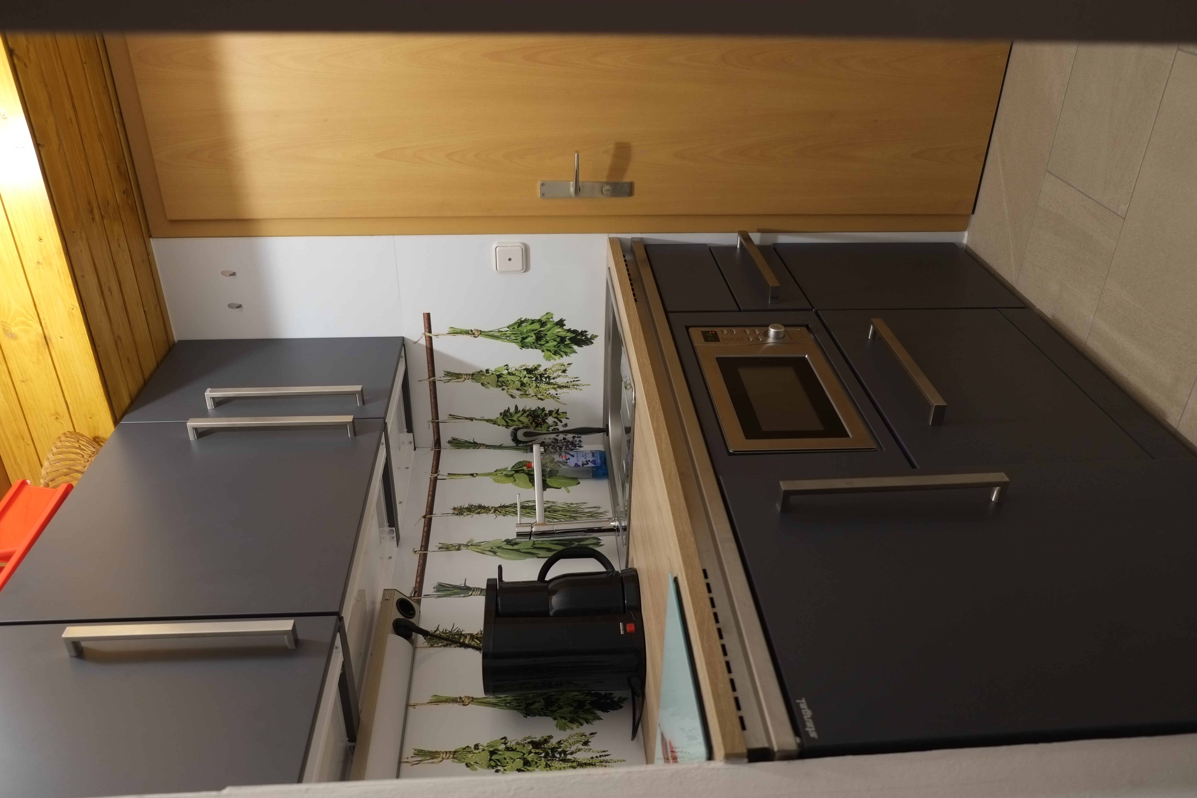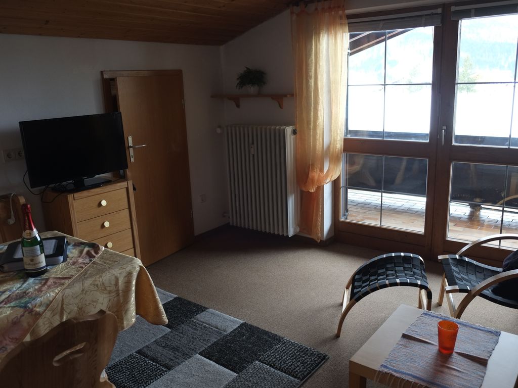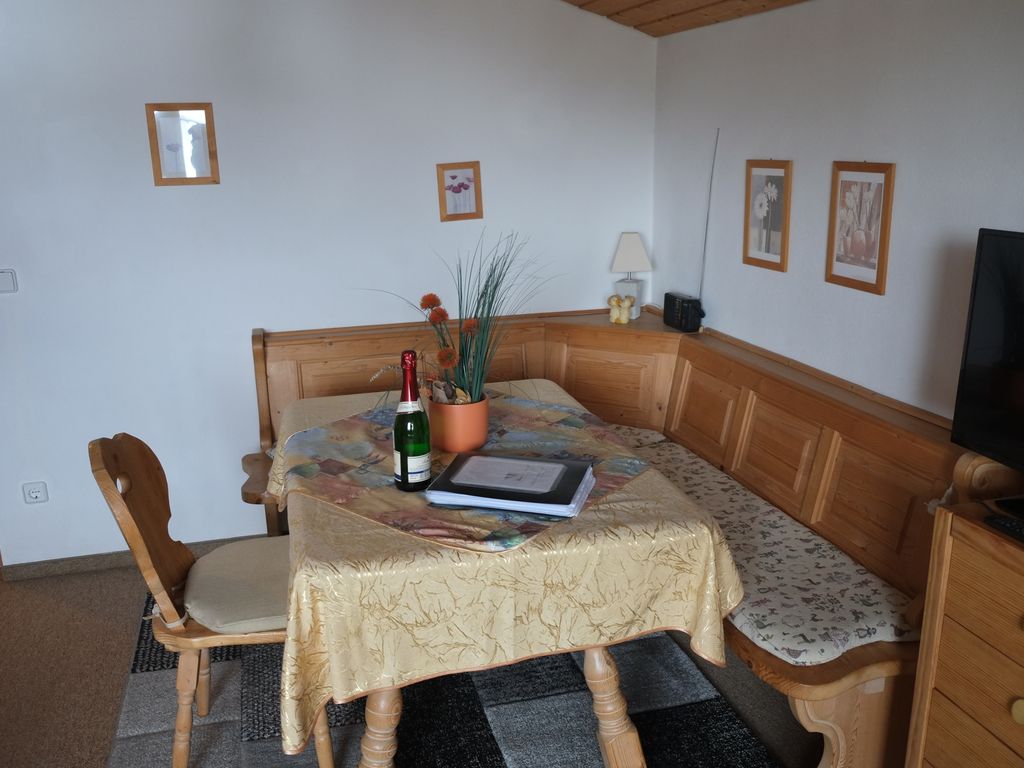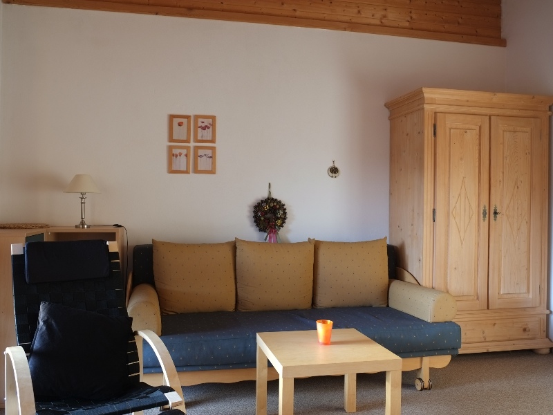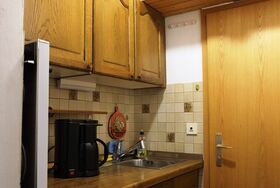 Zur Wohnung gehören eine Diele mit kleiner Küche mit zwei Kochplatten, Wasserkocher, Toaster und ein Badezimmer mit WC, Dusche und Fenster. Weiterhin verfügt die Wohnung über einen überdachten Südbalkon. Die zum Haus gehörende Sauna, Aufenthaltsraum und Skiraum stehen ebenfalls zur Verfügung.