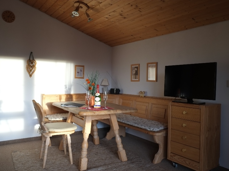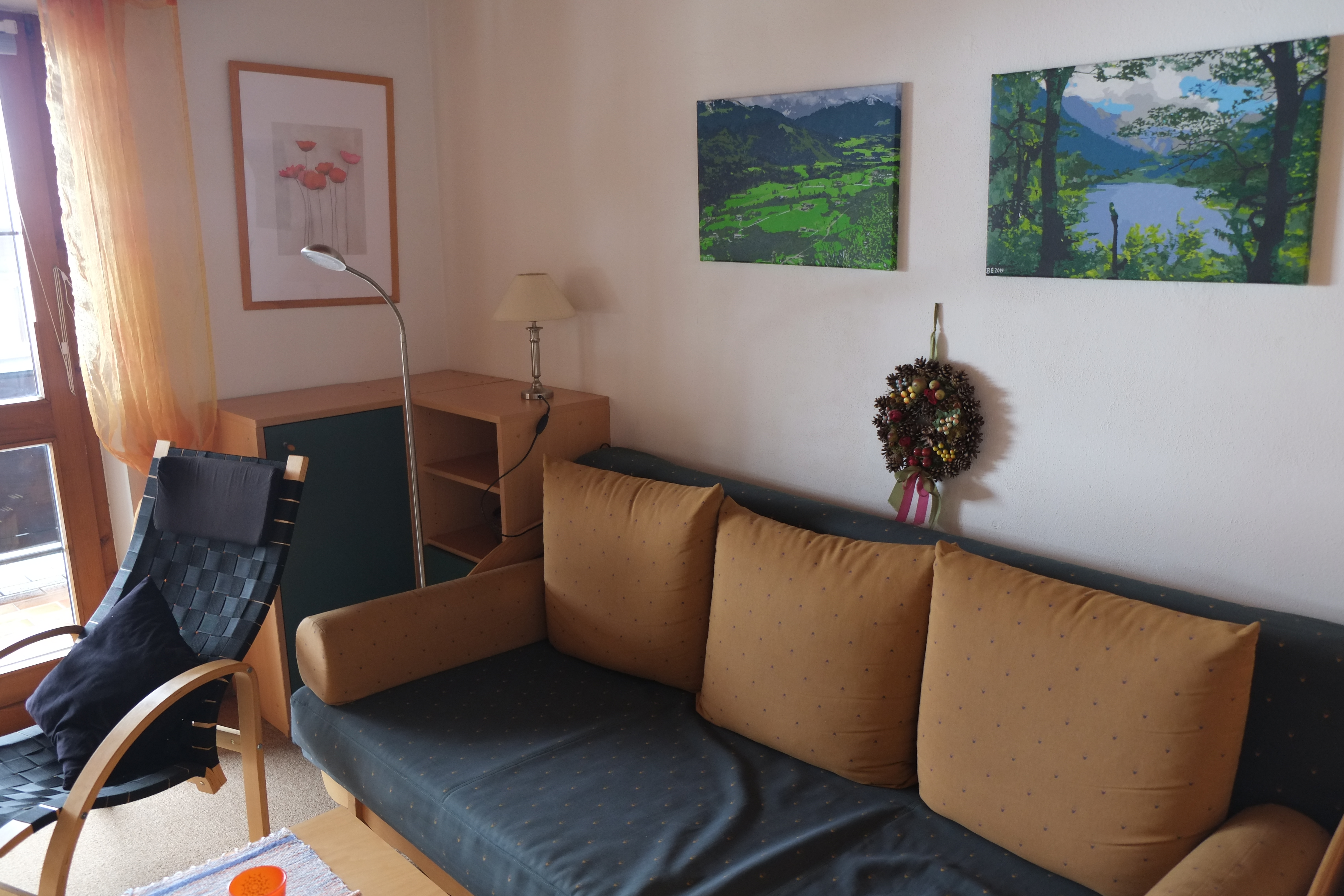 Ruhige, zentrumsnahe, gemütliche 1 1/2 Zimmer Ferienwohnung für 1-4 Personen mit freiem Blick auf das Kaisergebirge. Die Ferienwohnung befindet sich im zweiten Obergeschoß. Die Allergiker Wohnung verfügt über einen Wohnraum mit Schlafsofa und eine weitere Schlafmöglichkeit mit Doppelbett, welches sich in einem vom Wohnraum abgetrennten romantischen kleinen Zimmer mit Dachschräge und Aufbewahrungsmöglichkeiten befindet.