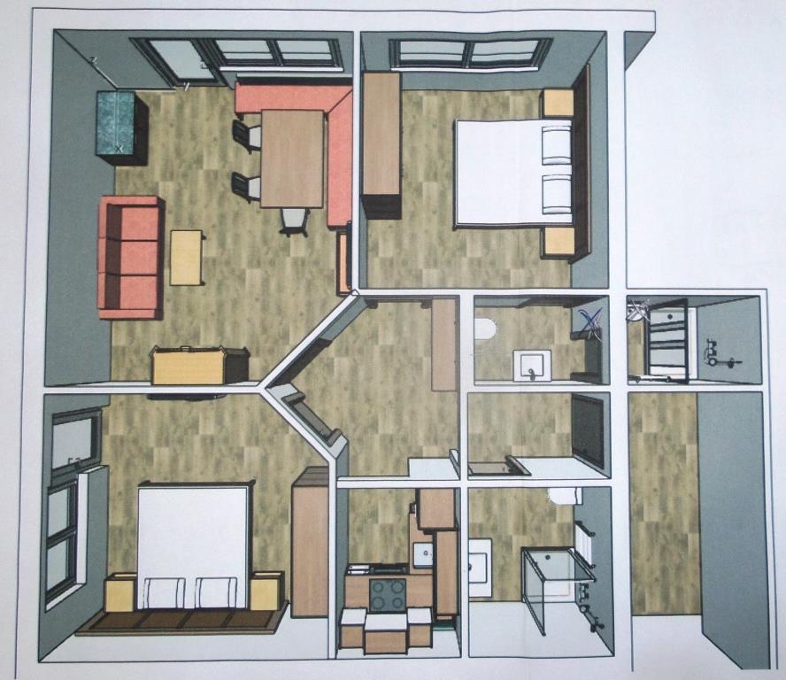 Typ 2a besteht aus zwei Doppel-Schlafzimmer, 1 Wohn/Schlafraum mit Doppel-Schlafcouch, offene Küche mit Herd (4 Platten und Backrohr), Spülmaschine und Mikrowelle. Ein Bad mit WC und eine Dusche mit WC, sowie 2 Sat-TV. Süd-Ost-Balkon - seeseitig. Größe 70 qm, für 4 bis 6 Personen