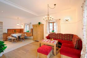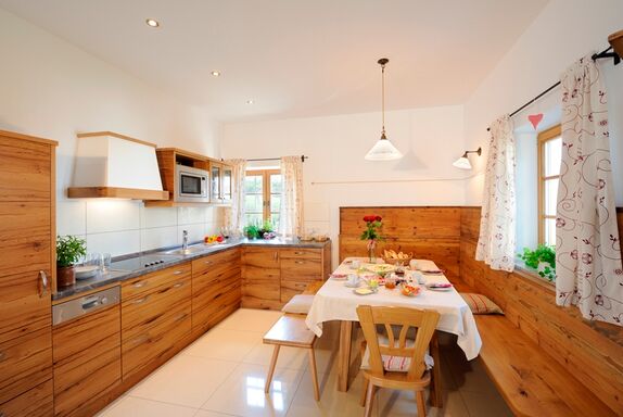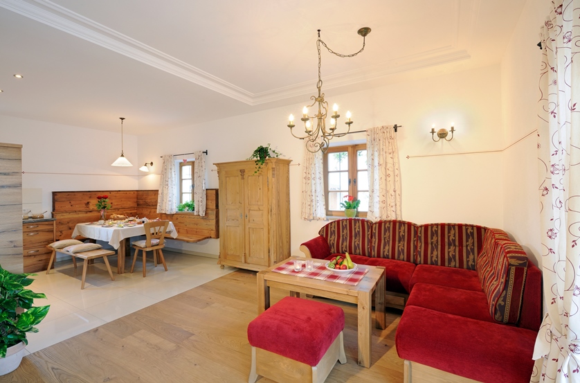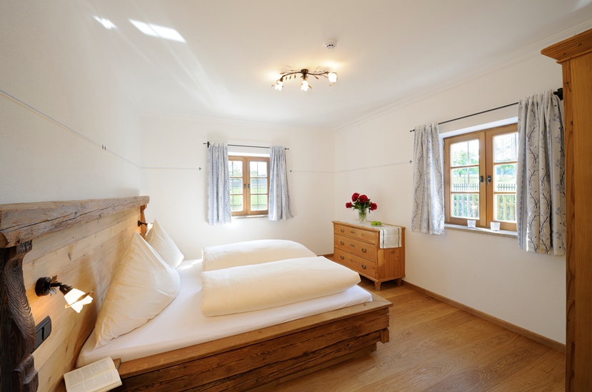Sie haben die Möglichkeit, in einer unserer 3 neuen 5-Sterne-Luxus-Wohnungen im Ferienhaus zu wohnen, wo modernste Ausstattung auf uriges, rustikales Ambiente trifft. Verbringen Sie Ihren unvergesslichen, komfortablen Urlaub mit Almatmosphäre in unserer mit 110 m² sehr geräumigen, barrierefreien Luxus-Ferienwohnung Chiemsee im Erdgeschoß. Sie bietet neben einem Eingangsbereich mit Garderobe, 2 Bäder (eines mit Dusche, eines mit Badewanne), 2 separate Schlafzimmer mit Doppelbett und 1 zusätzliches, getrenntes Kinderzimmer mit 2 Betten. Die Küche ist nach neuestem Standard eingerichtet und verfügt über Mikrowelle und Geschirrspüler. Der großzügige Wohn- und Essbereich mit gemütlicher Sitzecke und Lümmelcouch bietet viel Platz zum Entspannen. Ein großes Panoramafenster gewährt Ihnen freie Aussicht auf die zur Wohnung gehörenden Terrasse, auf der Sie die Seele baumeln lassen können.