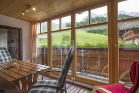 Große Ferienwohnung im Nebengebäude im 1. Stock, mit 3 Schlafzimmer, 1 Wohnküche, Geschirrspüler, Dusche und WC getrennt, TV, Balkon mit Wintergarten