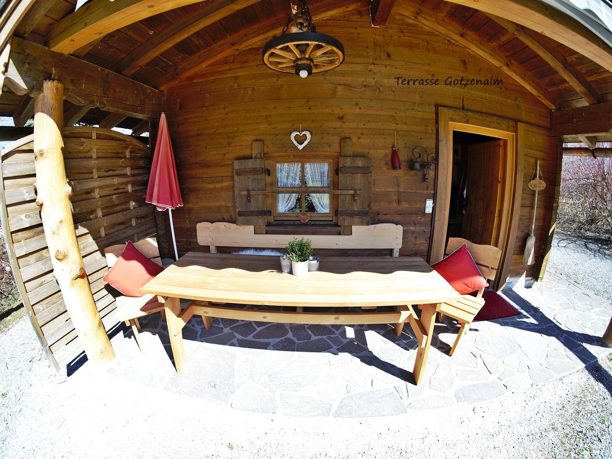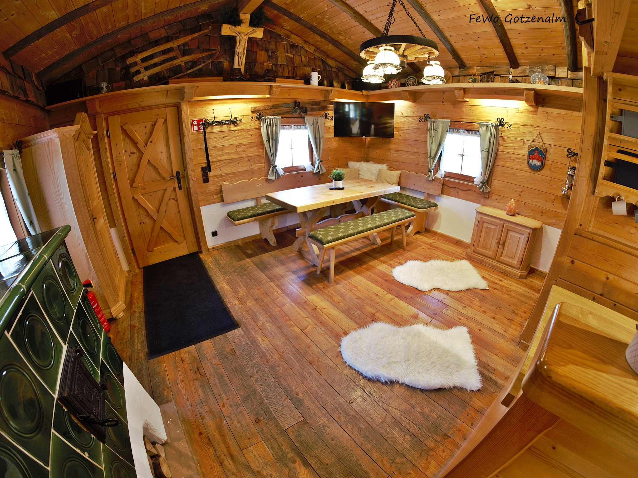 Unsere Ferienwohnung Gotzenalm (Almhütte) befindet sich direkt neben dem Hauptgebäude. Ausgestattet ist diese Ferienwohnung mit einer Küchenzeile (Kühlschrank mit kleinem Gefrierfach, Mikrowelle, 2-er Herdplatte, Kaffee-Padmaschine (Pad´s werden nicht gestellt), Toaster, Wasserkocher) Essecke, TV, Radio, kostenloses W-Lan, Bettwäsche, Handtücher und Föhn. Die eigene kleine Terrasse mit Sonnenliegen, Sitzmöglichkeiten und unverbauten Blick auf die Bergwelt lässt Sie den Tag entspannt ausklingen. Brötchenservice (im Haus) gegen Aufpreis möglich. Kostenloser Parkplatz direkt am Haus. Genießen Sie unvergessliche Tage bei uns am Königssee.