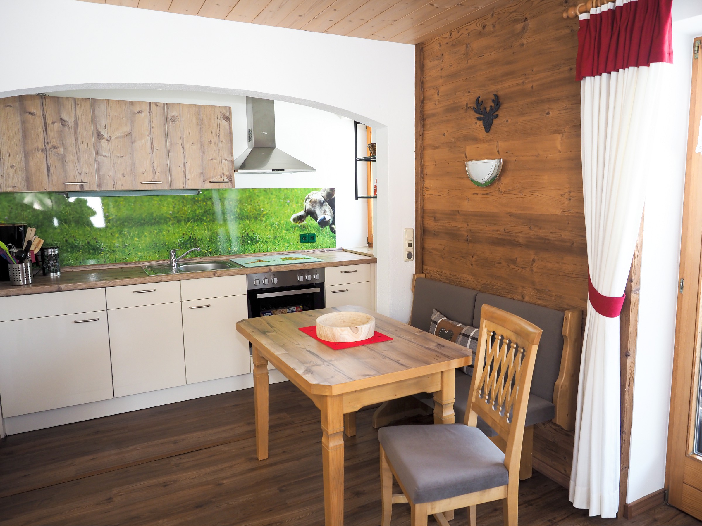 Unsere neue, komfortable Ferienwohnung Halsalm ist gemütlich im Landhausstil eingerichtet und bietet Ihnen vom Süd-West-Balkon einen wunderbaren Blick auf die Ramsauer Berge. Im Wohnzimmer befindet sich eine gemütliche Couch, Sat-TV, Radio, CD-Player, eine abgeteilte, hochwertig ausgestattete Küche mit Geschirrspüler, 4-Platten-Ceranfeld, Backofen usw. sowie ein einladender Essbereich. Des Weiteren verfügt die Wohnung über ein Schlafzimmer mit neuen Boxspringbetten, Diele und neuer Dusche/WC. Die gesamte Wohnung ist mit wischbaren Böden ausgestattet.