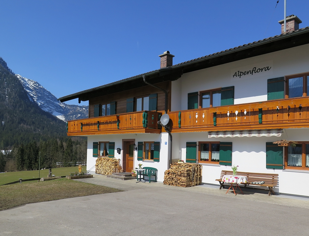 Unser Haus Alpenflora befindet sich in sonniger Höhenlage mit herrlichem Blick auf die Bergwelt des Ramsauer Tales. Die neuen Ferienwohnungen sind liebevoll und komfortabel eingerichtet und bieten Ihnen jeglichen Komfort Wir haben für Sie neu renoviert, Schlafzimmer sind mit Boxspringbetten ausgestattet.Dusche und WC sind neu renoviert Viele Wanderungen können Sie direkt am Haus starten; der sonnige Höhenwanderweg Soleleitung, der Weg zur Mordaualm und im Winter die Langlaufloipe Taubensee und weitere Winterwanderwege liegen in unmittelbarer Nähe. Das Skigebiet Hochschwarzeck erreichen Sie mit dem Auto in ca. 5 Minuten. UnsereWohnungen sind Nichtraucherwohnungen; selbstverständlich gestatten wir jedoch unseren Gästen auf den Balkonen zu rauchen.