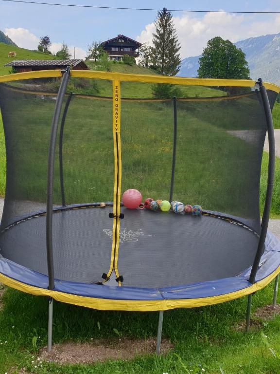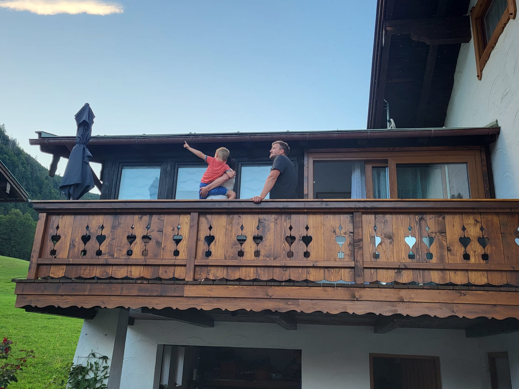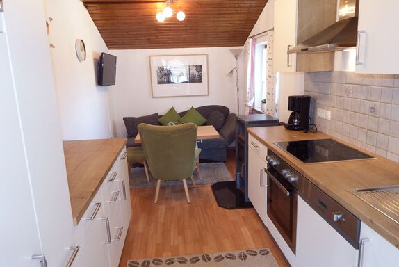 Unsere gemütliche Ferienwohnung verfügt über genug Platz für bis zu 3 Personen. In einer komplett eingerichteten Wohnküche mit Ceranfeld und Backofen, Spülmaschine, Kaffeemaschine, Kühl-Gefrierkombination und Mikrowelle können Sie nach Herzenslust kochen. Zudem stehen Ihnen kostenfreies W-Lan und in der Wohnküche ein großer Flachbild-TV (50 Zoll) zur Verfügung. Im Schlafzimmer befindet sich ein Doppelbett 1,80 x 2 m, ein Kleiderschrank, Kommode und ein separater Flachbild-TV (32 Zoll), Bettwäsche ist inklusive. Unser Bad mit Fußbodenheizung ist ausgestattet mit Waschbecken, Dusche und Fön. Handtücher gehören zum Service dazu. Das WC (separat) ist ebenfalls mit Fußbodenheizung ausgestattet. Für Kinder gibt es ein großes Trampolin und diverse Spielsachen. Außerdem stehen Ihnen auf Anfrage und gegen eine kleine Gebühr verschiedene Sachen zur Verfügung wie z. B. Waschmaschine, Wäschetrockner, Kinderhochstuhl, Reisebett ect. Nach ereignisreichen Berg-, Wander-, Kultur- oder Skitagen haben Sie die Möglichkeit, draussen vorm Haus den Abend ausklingen zu lassen. Vom Balkon können Sie das Bergpanorama genießen.
