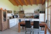 Große helle Zimmer mit schönen Holzdielenböden. Neue Küche mit Geschirrspülmaschine, Backofen, Herd, Dunstabzug, Kühlschrank und Gefrierfach mit großem Esstisch und Stühlen.