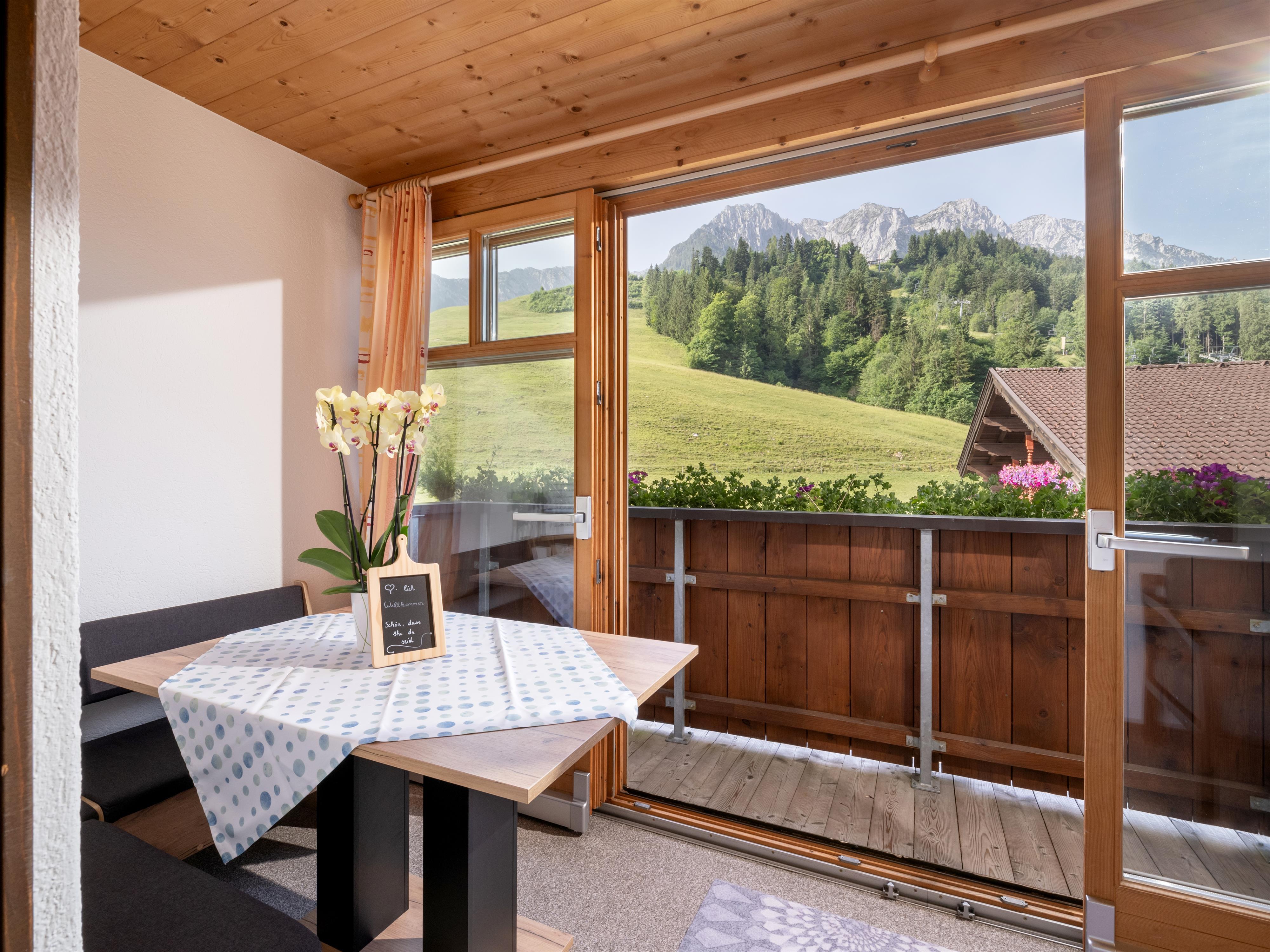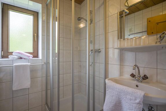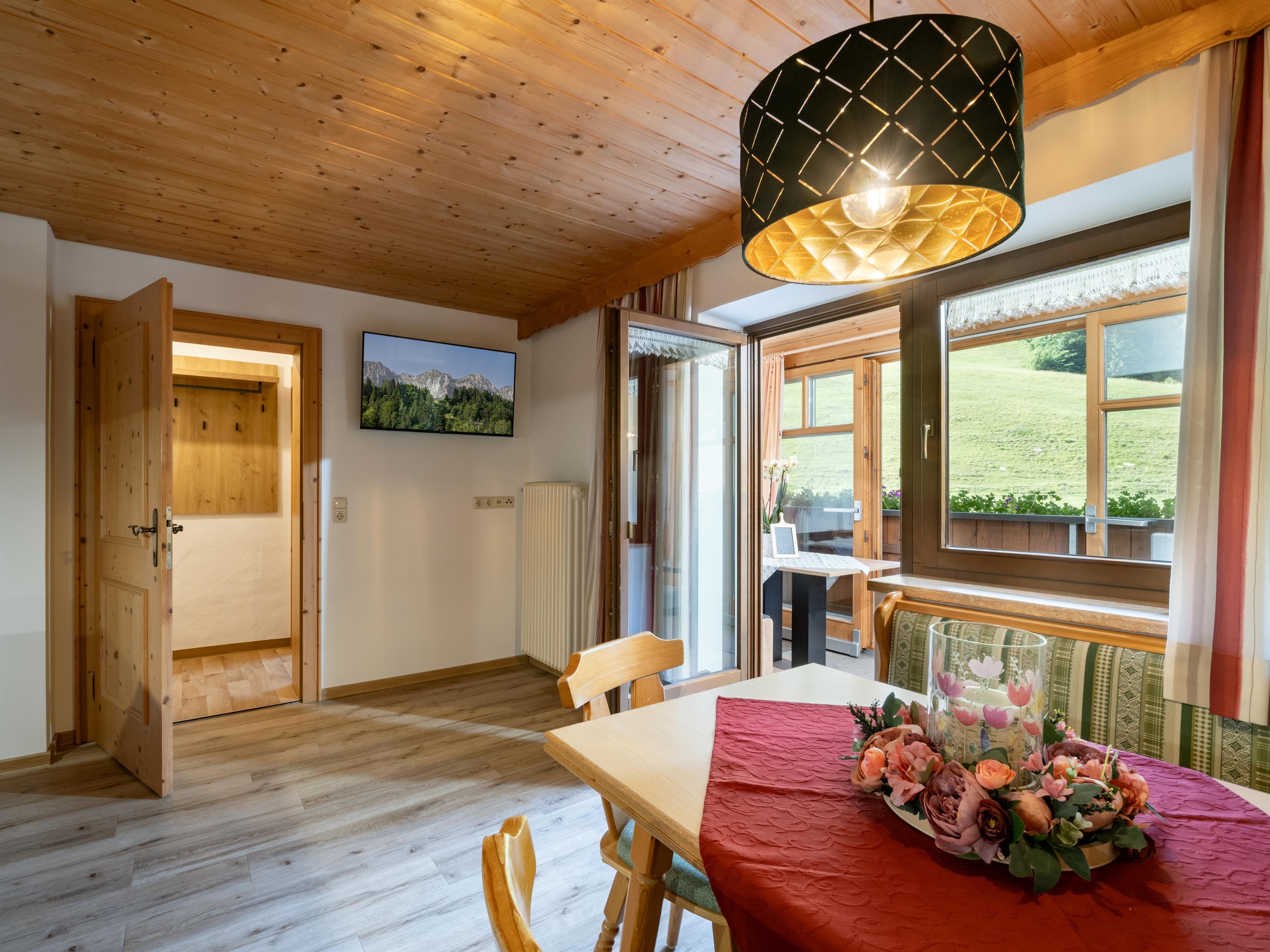 Großzügige Ferienwohnung im 2. Stock des Nebengebäudes, mit 2 Schlafzimmern, Wohnküche, Dusche und WC getrennt, TV, Balkon mit Wintergarten