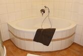 Bad mit Badewanne, Dusche und WC, sowie separates WC.