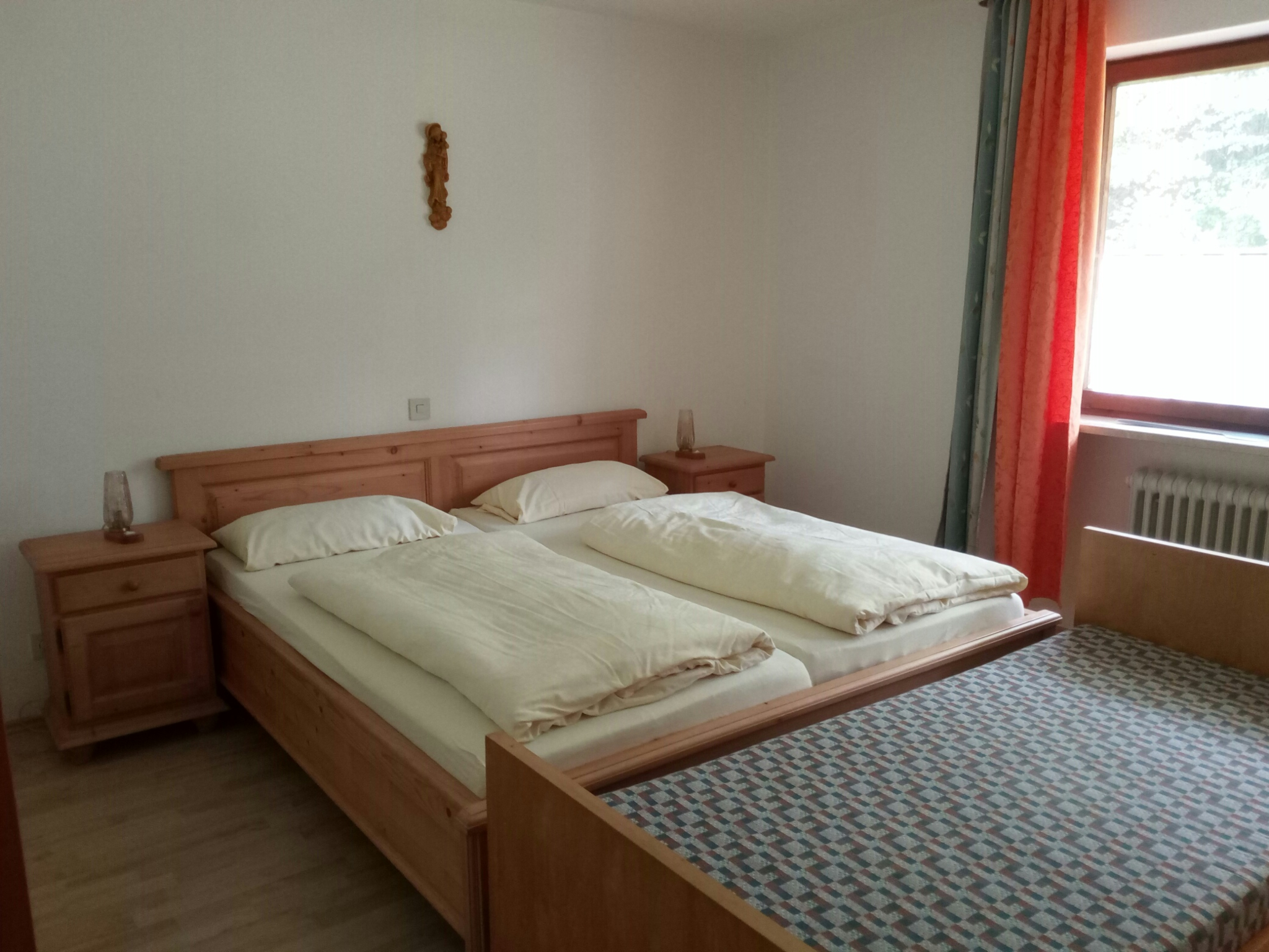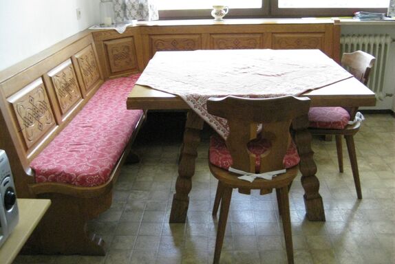 Die Wohnung verfügt über 3 separate Schlafzimmer und separates Wohnzimmmer, eine geräumige Küche mit E-Herd, Backrohr, Mikrowelle, Kaffeemaschine, Toaster, Eierkocher usw. Darüber hinaus bieten wir Ihnen auf Wunsch Gitterbett, Hochstuhl, Laufstall u. Wickeltisch an. Im Bad stehen Ihnen Duschkabine, Badewanne, Hochschrank und Fön zur Verfügung. WC extra. Der Terrasse ist überdacht und bietet Ihnen die Möglichkeit, jeden Tag im Freien zu sitzen, der Garten kann ebenfalls mitgenutzt werden. Nebenan entspannen die Kinder auf unserem Bauernhof beim Kühe und Kälber füttern.