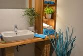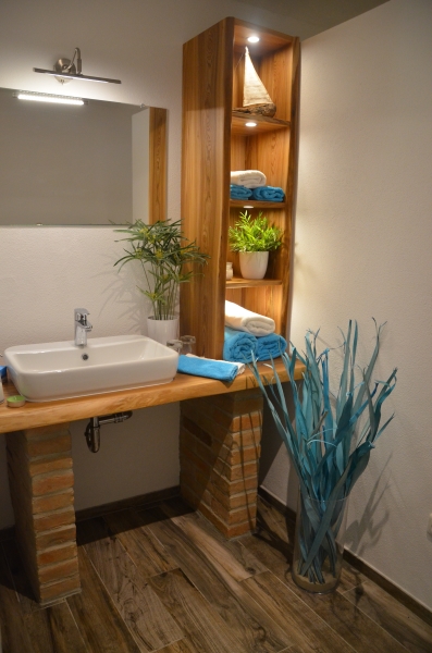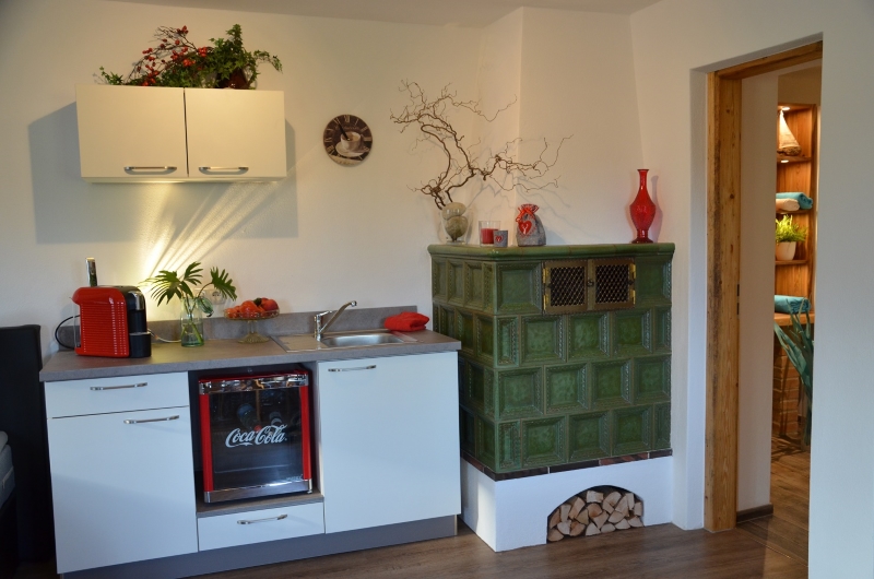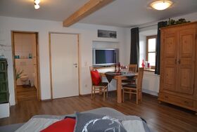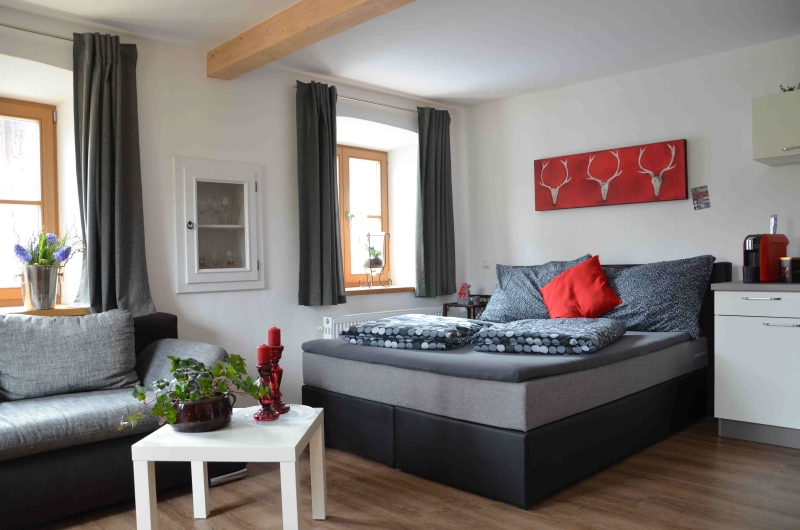 Im kombinierten Wohn- und Schlafraum befindet sich ein Boxspring-Doppelbett, eine ausziehbare Schlafcouch, Essecke, SAT-TV und W-LAN. Eine kleine Küchenzeile (kein Kochherd) ist mit Küchenutensilien, Kühlschrank, Wasserkocher, Kaffeeautomat und Spülbecken ausgestattet. Das Badezimmer hat eine begehbare Dusche und ist mit Hand-/Badetüchern sowie mit Fön und Toilettenartikeln versehen. Keine Tiere, Nichtraucher. Kostenlose Unterstellmöglichkeit in abschließbarer Garage für Fahrräder, Bikes oder andere Sportgeräte. Separater Garten mit überdachten Freisitz