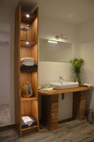 Im kombinierten Wohn- und Schlafraum befindet sich ein Boxspring-Doppelbett, eine ausziehbare Schlafcouch, Essecke, SAT-TV und W-LAN. Eine separate Küche ist mit Küchenutensilien, Kaffeemaschine, Wasserkocher, Kühlschrank sowie Kochherd mit Backofen eingerichtet. Das Badezimmer hat eine begehbare Dusche und ist mit Hand-/Badetüchern sowie mit Fön und Toilettenartikeln versehen. Keine Tiere, Nichtraucher Kostenlose Unterstellmöglichkeit in abschließbarer Garage für Fahrräder, Bikes od. andere Sportgeräte. Separater Garten mit überdachten Freisitz.