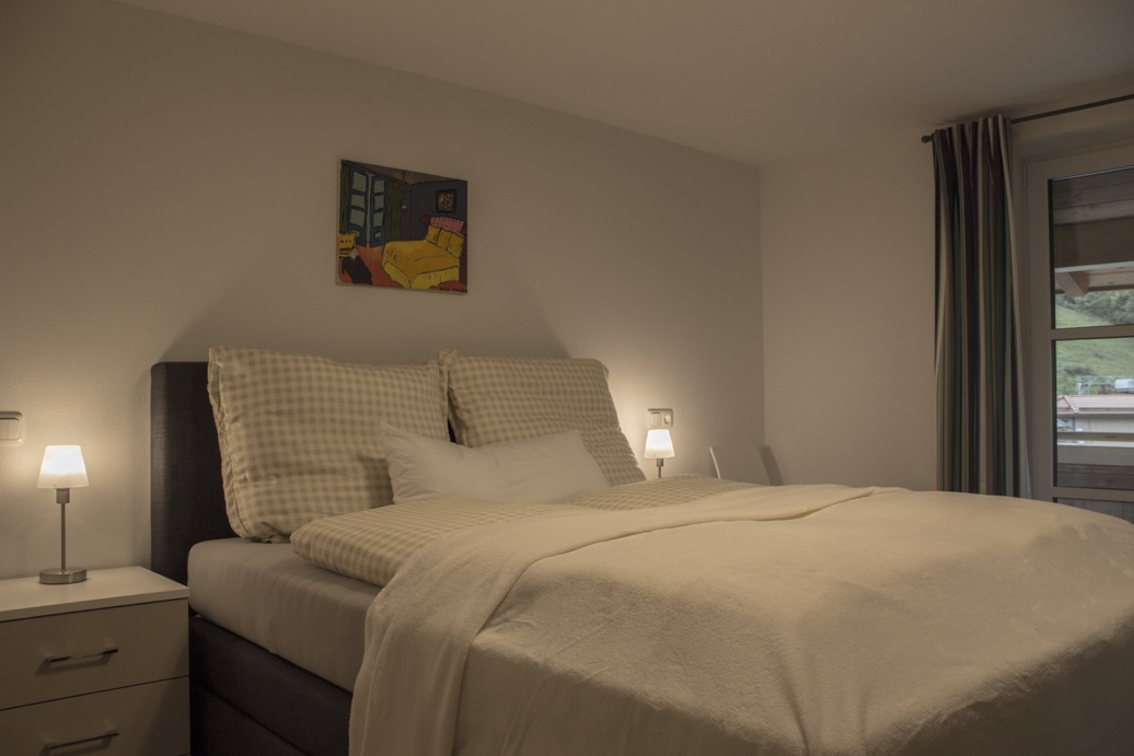 Unsere Ferienwohnung Hubert ist modern und gemütlich eingerichtet. Die Wohnung ist perfekt geeignet für 2 Personen. Auf dem Balkon können Sie die schöne Aussicht genießen. Selbstverständlich gibt es einen Fernseher, WLAN und eine Kompaktanlage, an die Sie Ihr Smartphone, Ihren Laptop oder Ihr Tablet anschließen können. Außerdemsteht Ihnen eine komplett ausgestattete Küche zur Verfügung inklusive Toaster, Kaffeemaschine, Wasserkocher etc.. Frisch bezogene Betten und eine ausreichende Zahl Handtücher gehören genauso zum Service wie tägliches Bettenmachen und ein kleiner Badezimmerdurchgang. Gerne stellen wir Ihnen ein Kinderbett oder einen Wickeltisch zur Verfügung, sowie jegliche Hilfsmittel für Menschen mit Behinderung und Senioren.