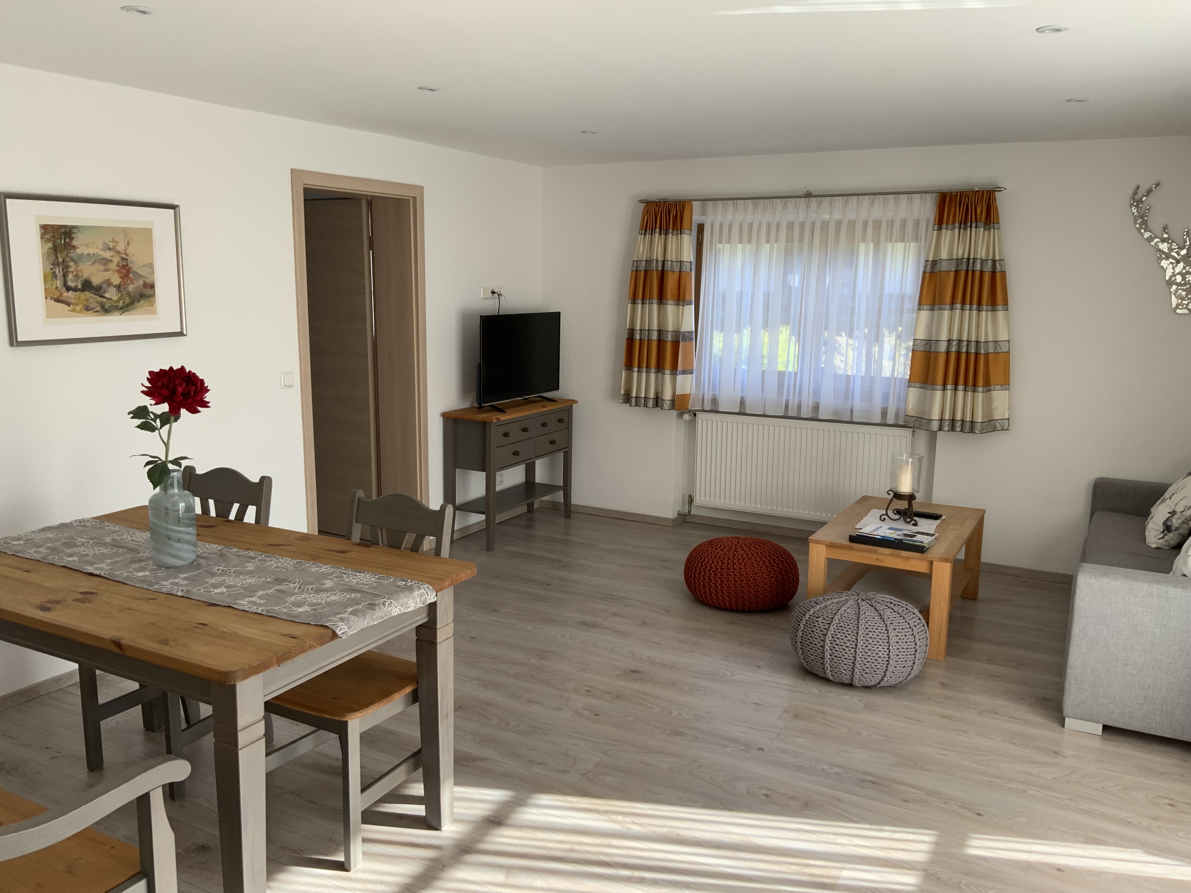 Genießen Sie auf der großzügigen Terrasse den herrlichen Blick auf die Berge. Die Wohnung wurde komplett neu renoviert. Die Küche ist voll ausgestattet mitCeran-Kochfeld, Backofen, Kühlschrank, Spülmaschine, Wasserkocher, Toaster, Kaffeemaschine. Genießen Sie schon beim Frühstück den herrlichen Blick auf die Berge vom Kehlstein bis zum Jenner.Im großzügigen Wohnzimmer befinden sich ein großer Essplatz, eine Ausziehcouch und ein Flachbildfernseher.Das Bad verfügt über Dusche und WC sowie einen Handtuchwärmer. Haarfön und Handtücher stehen selbstverständlich für Sie bereit.Das separate, ruhige Schlafzimmer ist ausgestattet mit einem Doppelbett.Unsere Wohnung ist eine Nichtraucherwohnung.Wir sind Hundebesitzer und nehmen leider keine Tiere auf.Bitte beachten Sie, dass sich auf dem Grundstück ein ungesicherter Gartenteich befindet!