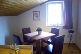 Unserer Ferienwohnung befindet sich im 1. Stock mit Ostbalkon. Für 3 Personen bietet die Wohnung Platz. Die Küche mit Sitzgruppe lädt zum gemütlichen Verweilen ein. Im Wohn-Bereich befindet sich eine Couch, sowie eine zusätzliche Essecke. Das Schlafzimmer besteht aus einem Doppelbett und einem Einzelbett, von dort aus erreichen Sie den Balkon. Im hellen und freundlichen Bad finden Sie eine Badewanne, wie auch eine Dusche vor. Die Toilette befindet sich einem seperaten Raum. Im Garten haben Sie die Möglichkeit, den überdachten Freisitz mit Liegewiese zu nutzen. Wir bieten Ihnen, Kabel-TV, DVD-Player, Radio, Kaffeemaschine, Wasserkocher, Eierkocher, Toaster, Bachkofen, Tiefkühlfach, Kühlschrank, Bettwäsche, Handtücher, Fön, Heizung, Nichtraucher, Liegewiese, Grillmöglichkeit. Für Fahrräder bieten wir Ihnen einen Unterstellplatz.