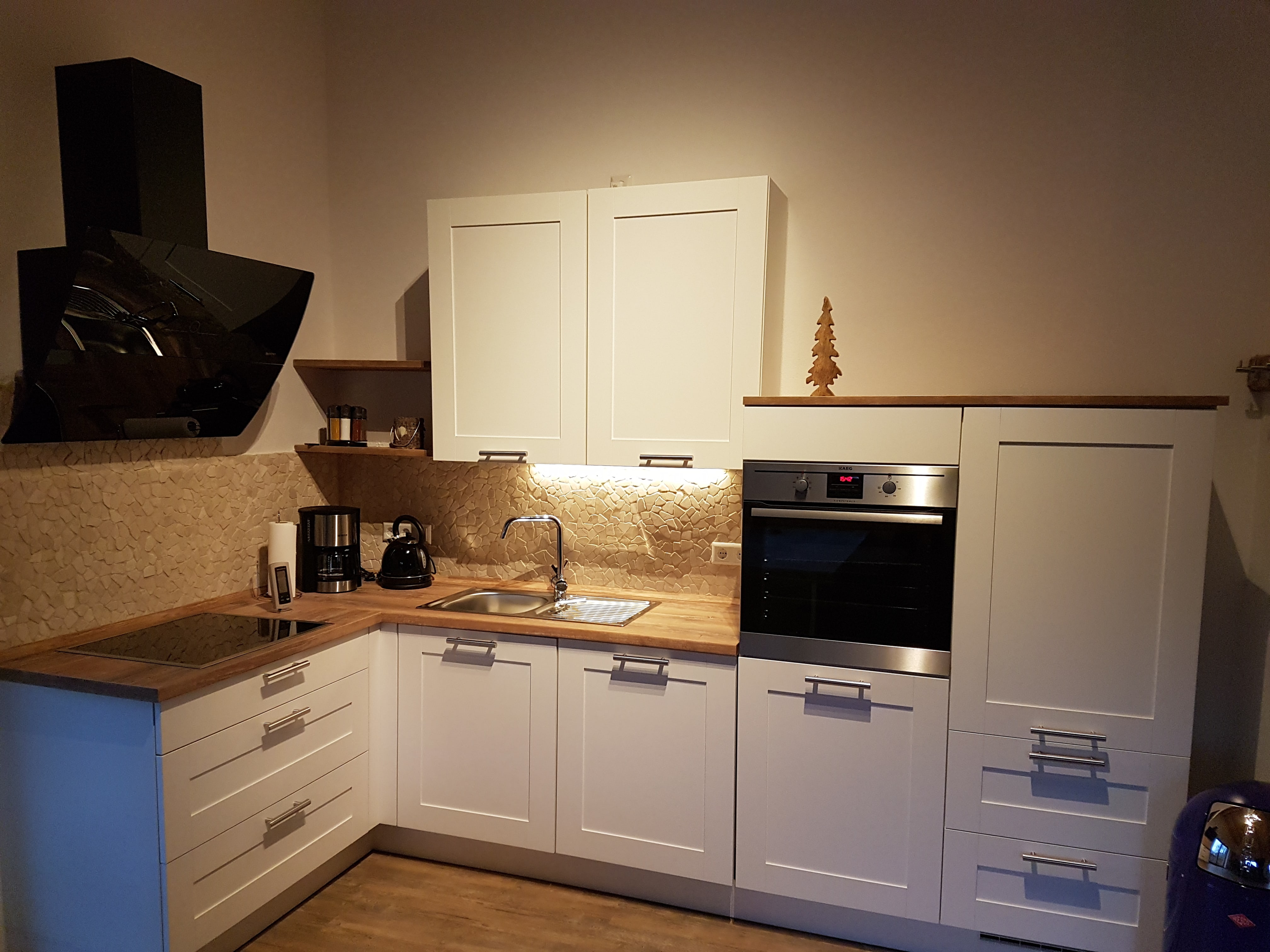 • einer integrierten, voll ausgestatteten Küche mit Backofen, Ceranfeld, Spülmaschine und kopffreien