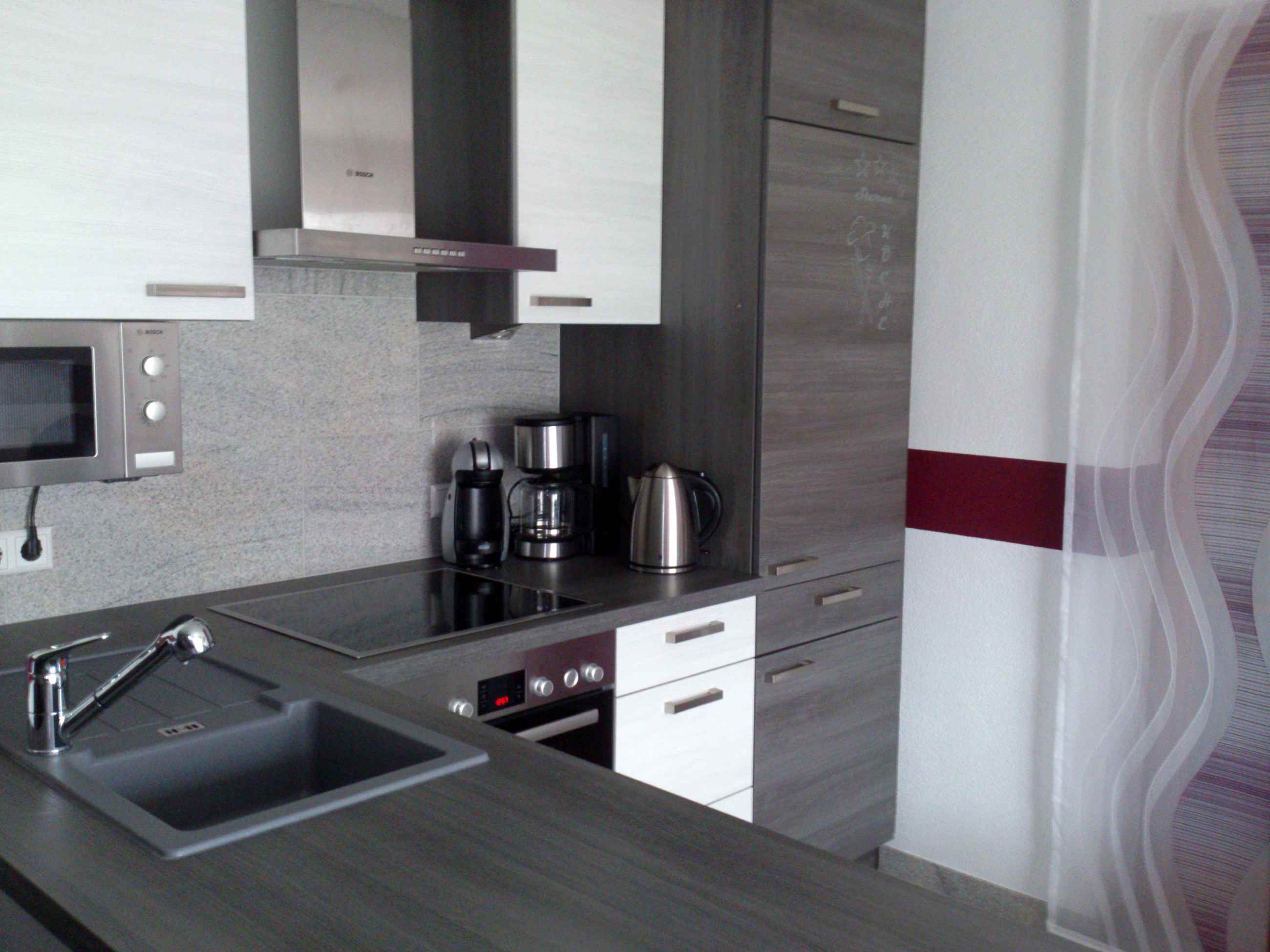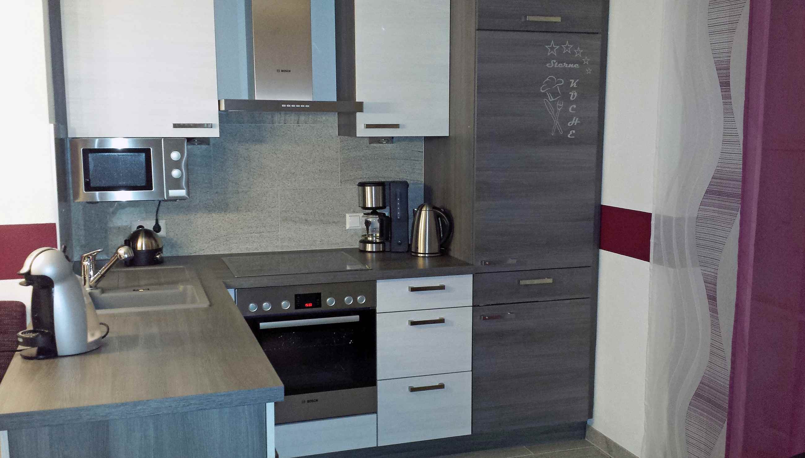 Wir bieten Ihnen einen entspannten Urlaub in unserer ca. 45m² großen modernen Wohnung. Unser Appartment bietet Platz für 4 Personen, bei Bedarf besteht die Möglichkeit im Wohnbereich einem weiteren Gast einen Schlafplatz zu bieten. Für das perfekte Schlaferlebnis ist unser Schlafzimmer mit einem Boxspringbett 1,80x2,00m ausgestattet. Ihre Kids haben bei uns ihr eigenes kleines Reich mit einem Etagenbett 0,90x2,00m und einem kleinen LED Fernseher. Das hochwertige Leder - Ecksofa lädt zum gemütlichen Verweilen ein, der 40Zoll LED Fernseher macht den Wohnbereich perfekt. Die Essgruppe mit einer modernen Eckbank und 2 Stühlen bietet Platz für fünf Personen. Die komfortable, exklusiv ausgestattete Küche mit Spülmaschine, 4-Platten Ceran Herd, Backofen, Mikrowelle, Kühlschrank, usw. lässt keine Wünsche offen. W-LAN, Telefon und die Benutzung der Waschmaschine und des Trockners sind bei uns kostenlos.