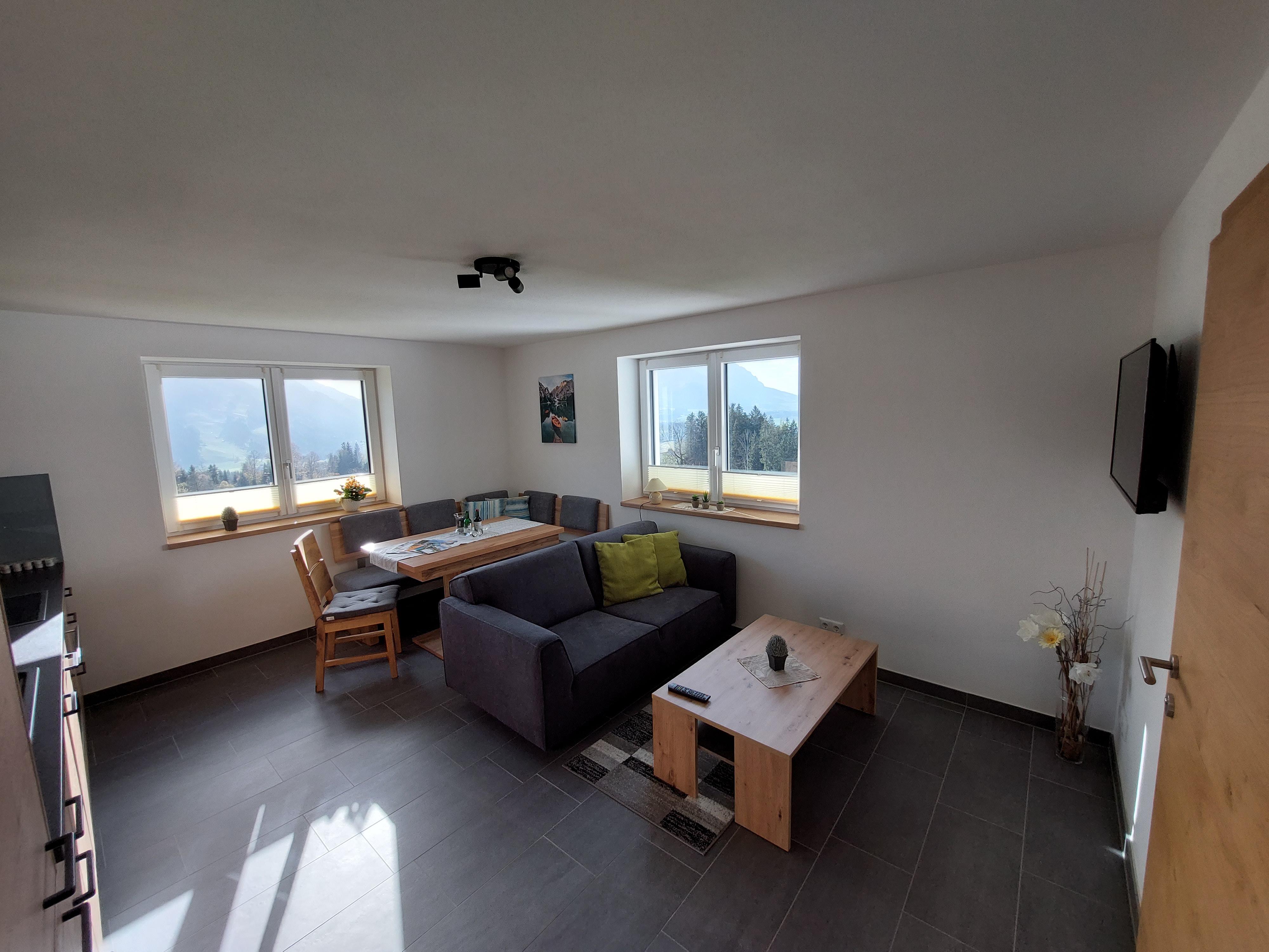 Wir bieten Ihnen geräumige, modern eingerichtete Appartements mit Balkon und herrlichem Blick auf die Berge. Außerdem verfügen sie über Flachbild Sat-TV und kostenfreies WLAN.