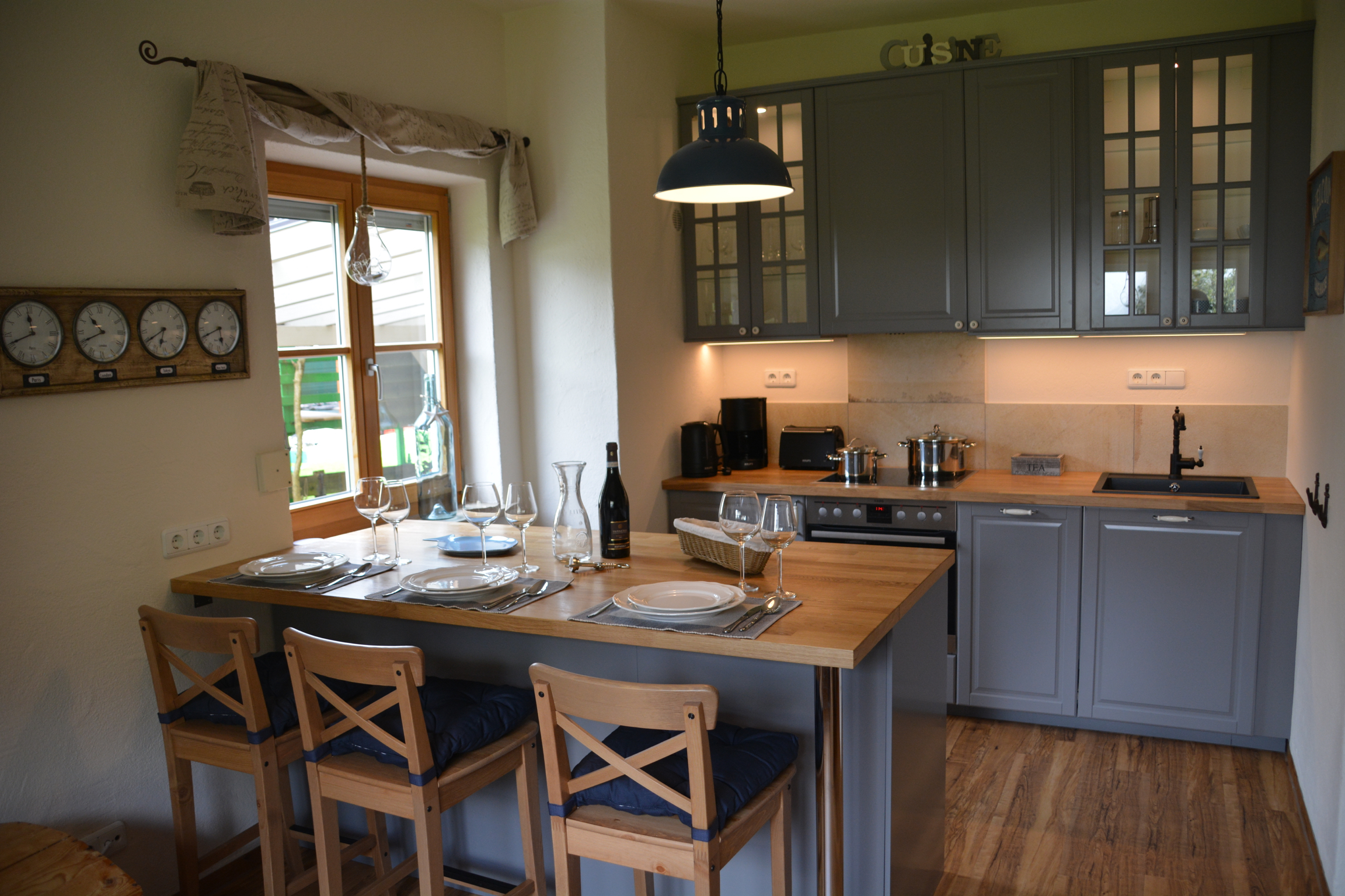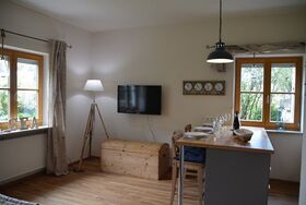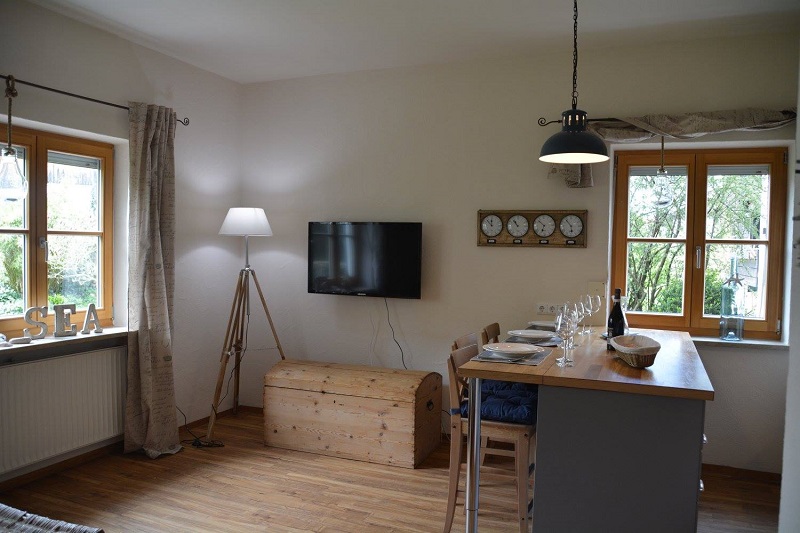 Gemütliche Ferienwohnung in maritim-mediterranem Ambiente und gehobener Ausstattung mit Flachbild-TV, DVD, kostenlosem WLAN, Waschmaschine, Küche mit Markengeräten wie Geschirrspüler, Herd, Backofen, Kühlschrank mit Gefrierfach, Kaffeemaschine, Toaster, Wasserkocher und sonniger Terrasse. Wir befinden uns in zentraler Lage. Sie erreichen den Bahnhof in 2 Minuten, die Ortsmitte in 5 Minuten und zum Chiemsee sind es ca 1,5 km. Direkt von der Wohnung aus können Sie wandern, radfahren und mountainbiken. Gerne informieren wir Sie über die interessantesten Touren. Im Winter auch gut geeignet als Ausgangspunkt zum Skifahren. Die Kampenwand liegt quasi vor der Haustür, nach Reit im Winkl fährt man ca 30 min.