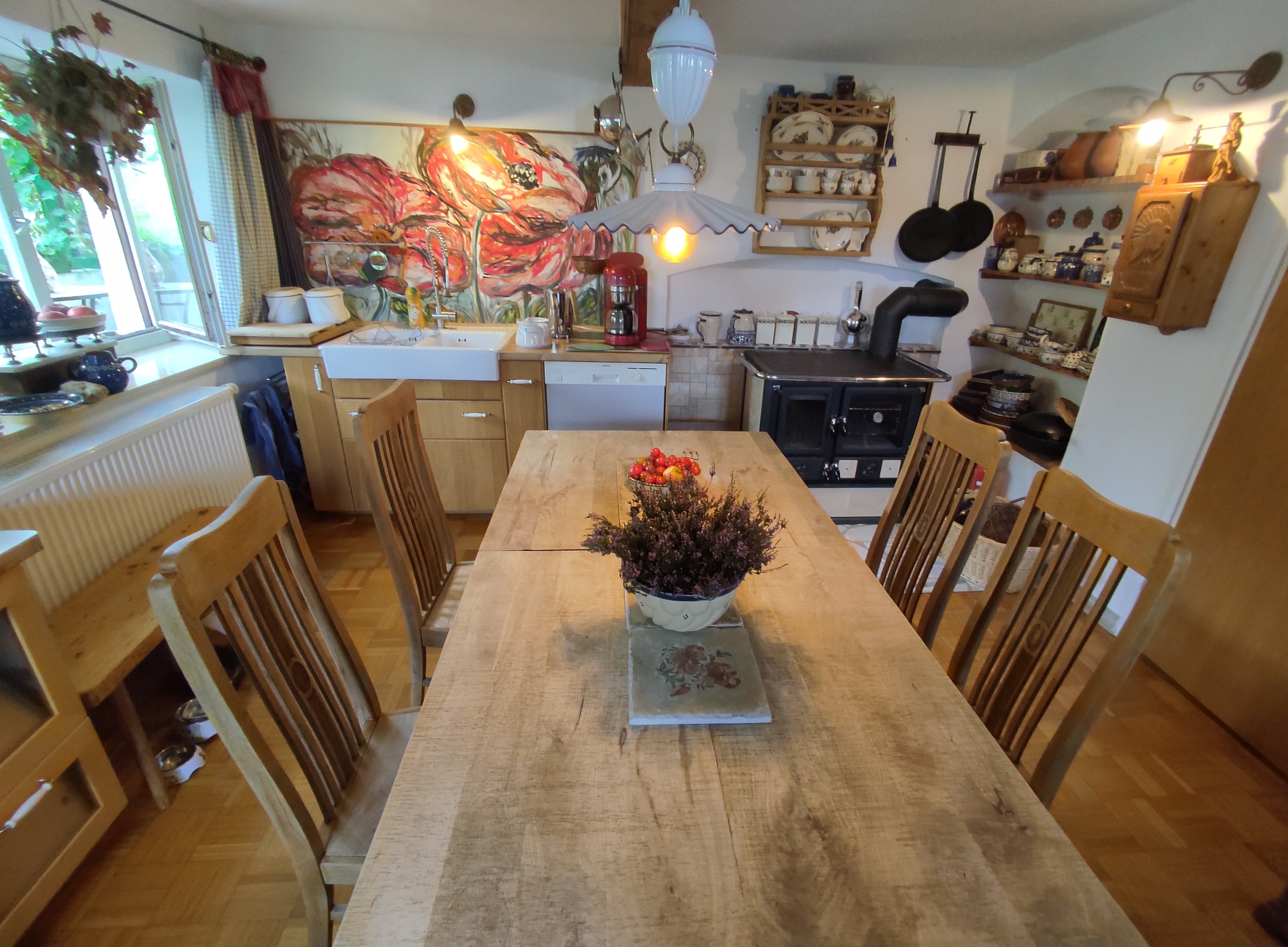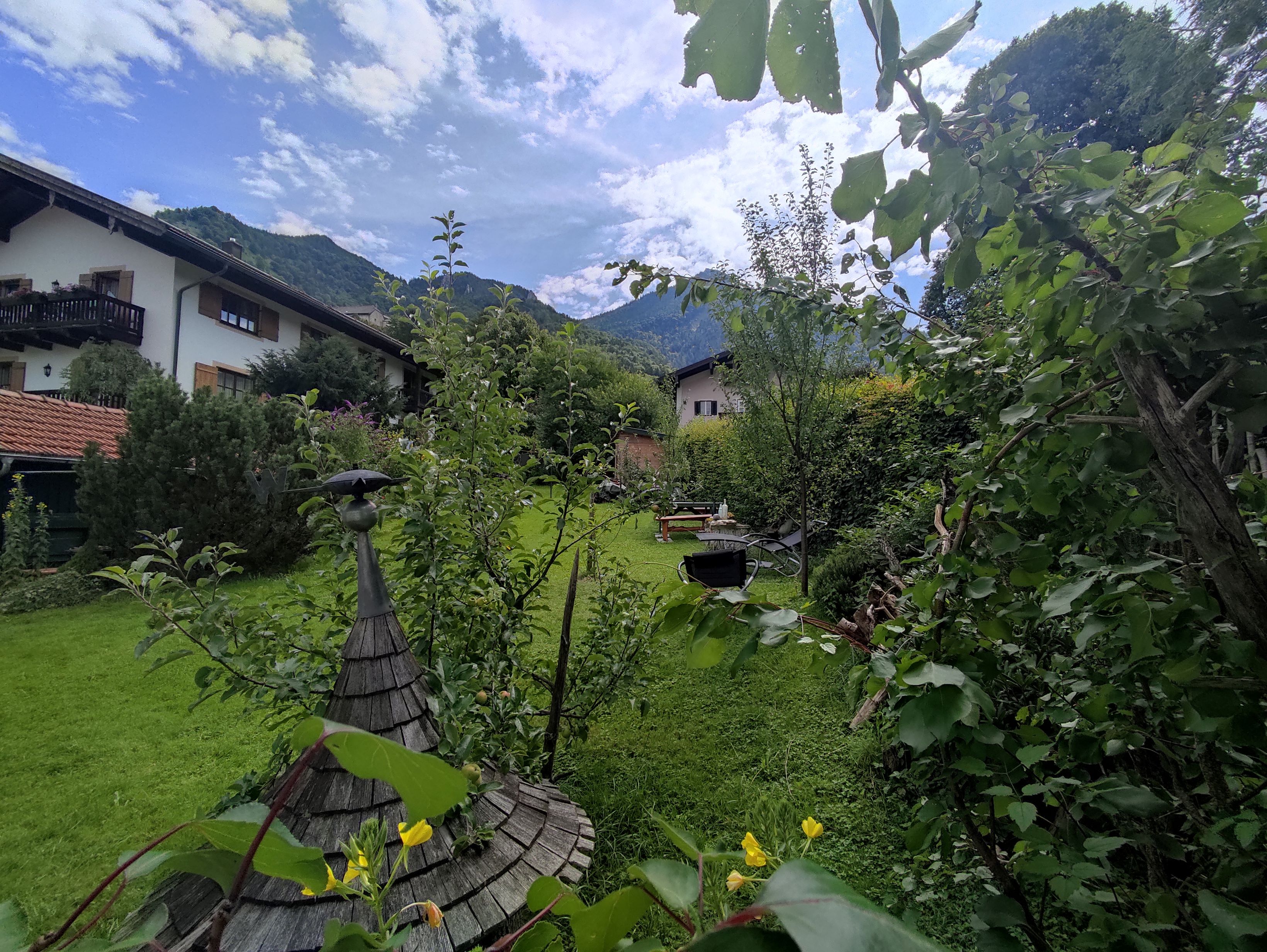 Können Sie sich vorstellen, wie frühere Generationen gelebt haben? Möchten Sie dies mal in Ihrem Urlaub ausprobieren? Das Haus ist von anno 1583 und erinnert Sie vielleicht an die alten Geschichten Ihrer Urgroßeltern. Vieles hier erinnert daran, wie es früher einmal war, eingebettet in modernem Komfort, also ein richtiges Erlebniswohnen. Und das alles künstlerisch geschmackvoll und liebevoll arrangiert. Dazu der fantastische Bergblick vom Fenster aus zur Burg Marquartstein, vom Predigtstein zum Hochlerch, dem Vorberg des Hochgern, sowie das erhabene Felspanorama der Luchsfellwand. Auch schaut man direkt in den großzügigen Garten auf die wunderschöne Richard-Strauss-Villa.