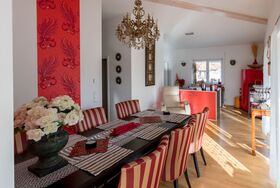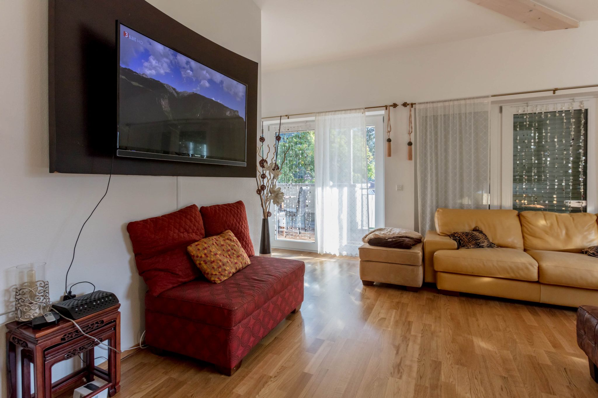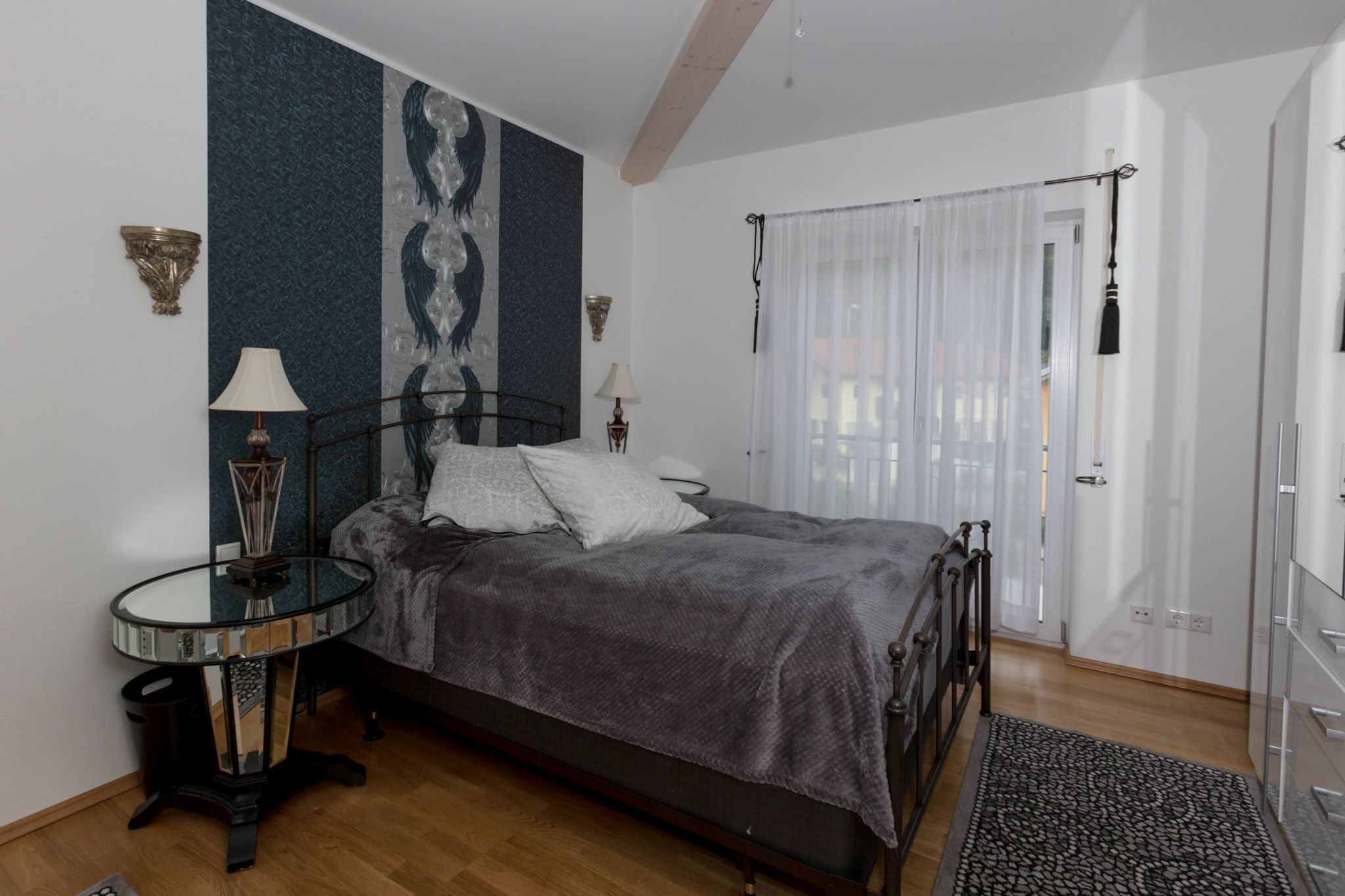Die exklusiv eingerichtete Ferienwohnung bietet Ihnen auf 150qm viel Platz und Ruhe, in der bis zu 6 Personen den Alltag hinter sich lassen können. Genießen Sie auf dem riesigen Balkon den Ausblick auf die Berge in der Nachmittags- oder Abendsonne. Im großen Wohnzimmer können Sie sich auf einem der drei Sofas bei einem guten Film entspannen (großer Fernseher mit Kabel-TV und Netflix) oder über das Internet (WLAN) Ihre nächsten Ausflüge planen. Wenn Sie gerne kochen, so ist dies in der komplett ausgestatteten Küche ein leichtes. Vom Herd bis zur Kaffeemaschine ist alles vorhanden, um im Essbereich oder auf dem Balkon ein zauberhaftes Essen zu servieren. Die Betten sind zur Anreise bezogen und Handtücher liegen für Sie parat. Die Neubauwohnung liegt im 2. Stock, zu der Sie mit dem Aufzug oder über die Treppe gelangen. Der Zugang ist ebenerdig, ohne Stufen, so dass auch gehbeeinträchtige Personen mühelos in die Wohnung gelangen können (z. B. mit Rollstuhl oder Rollator). Brave Hunde und Kinder sind willkommen. Für Baby oder Kleinkind stellen wir Ihnen ein Kinderbett zur Verfügung.
