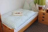 Großzügige Ferienwohung im Parterre, einfach eingerichtet aber voll ausgestattet, mit 3 Schlafzimmern, Wohnküche, Dusche/WC, separates WC, Sat-TV, 2 Terrassen. Ein Doppelzimmer mit Bad/WC ist integriert, kann separat vermietet werden. Frühstück mit leckeren regionalen Produkte auf Anfrage möglich