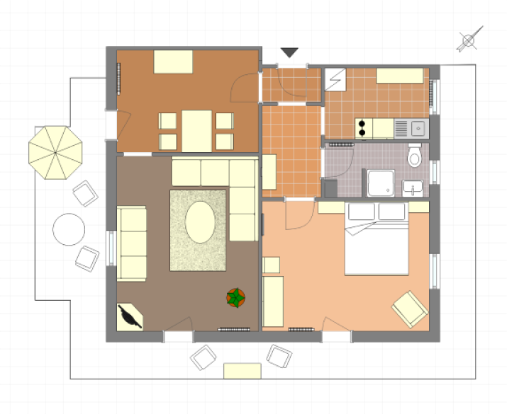 Haus Sonneck - Chiemgau Karte - Ferienwohnung Gruberhörndl für 3 Personen mit Balkon, separater Schlafraum, 65 m²
